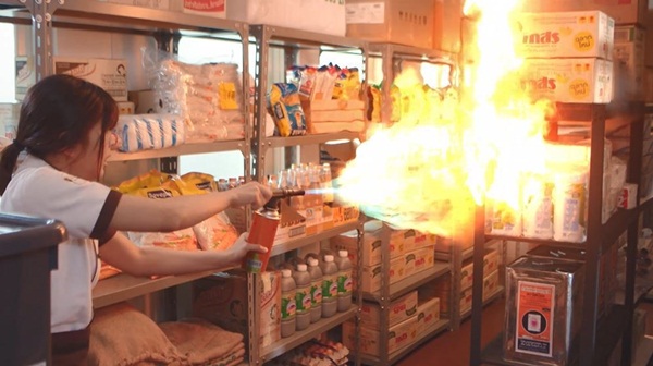 ทีมงานทำการจุดไฟเผาร้านก่อน
