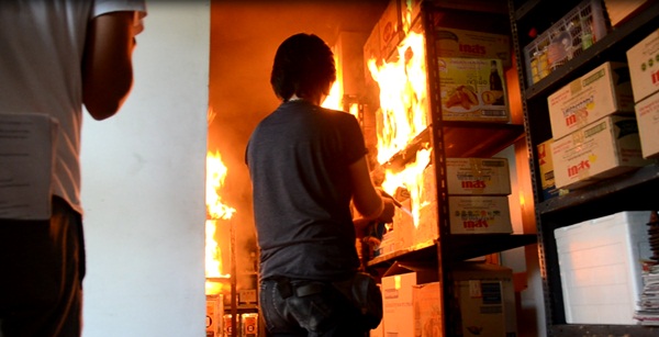 ภาพเบื้องหลังที่ทีมงานทำการเผาร้าน
