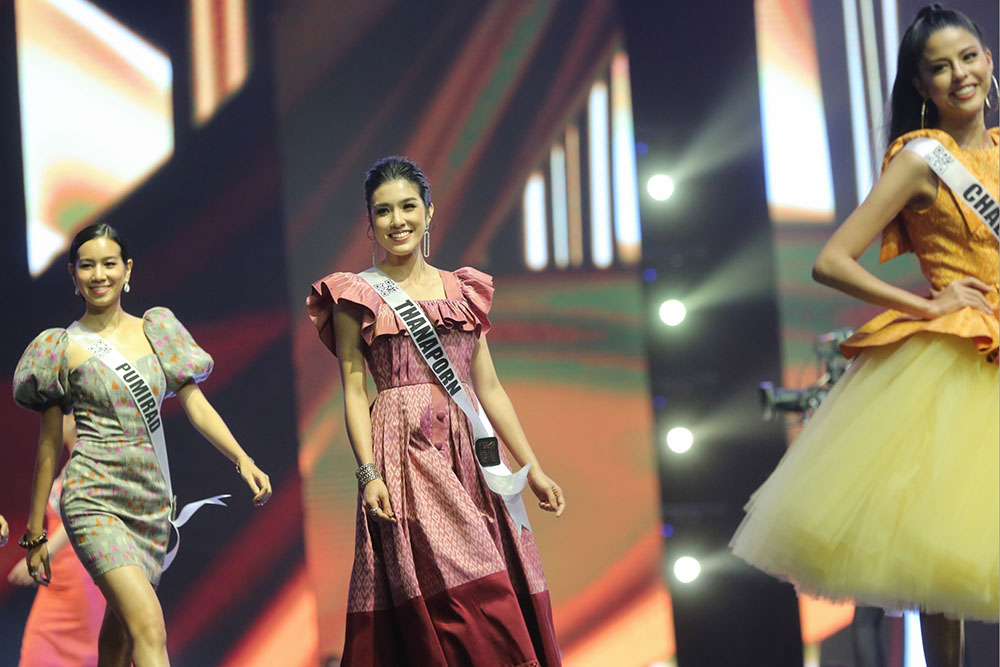 เวที Miss Universe Thailand 2019 ค่ำคืนนี้ เริ่มต้นเปิดตัวผู้เข้าประกวดอย่างสง่างามและอ่อนหวาน ในชุดผ้าไทยประยุกต์ ที่ดีไซน์และออกแบบอย่างมีเอกลักษณ์ ซึ่งแต่ละชุดนั้นผู้ออกแบบได้เลือกสรรผ้าไทยมาจากหลากหลายภูมิภาค โดยมีจุดประสงค์เพื่อช่วยเผยแพร่วัฒนธรรมและส่งเสริมฝีมือของคนไทย