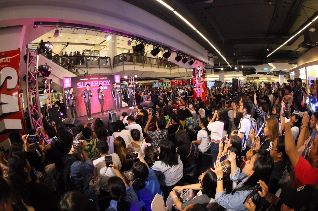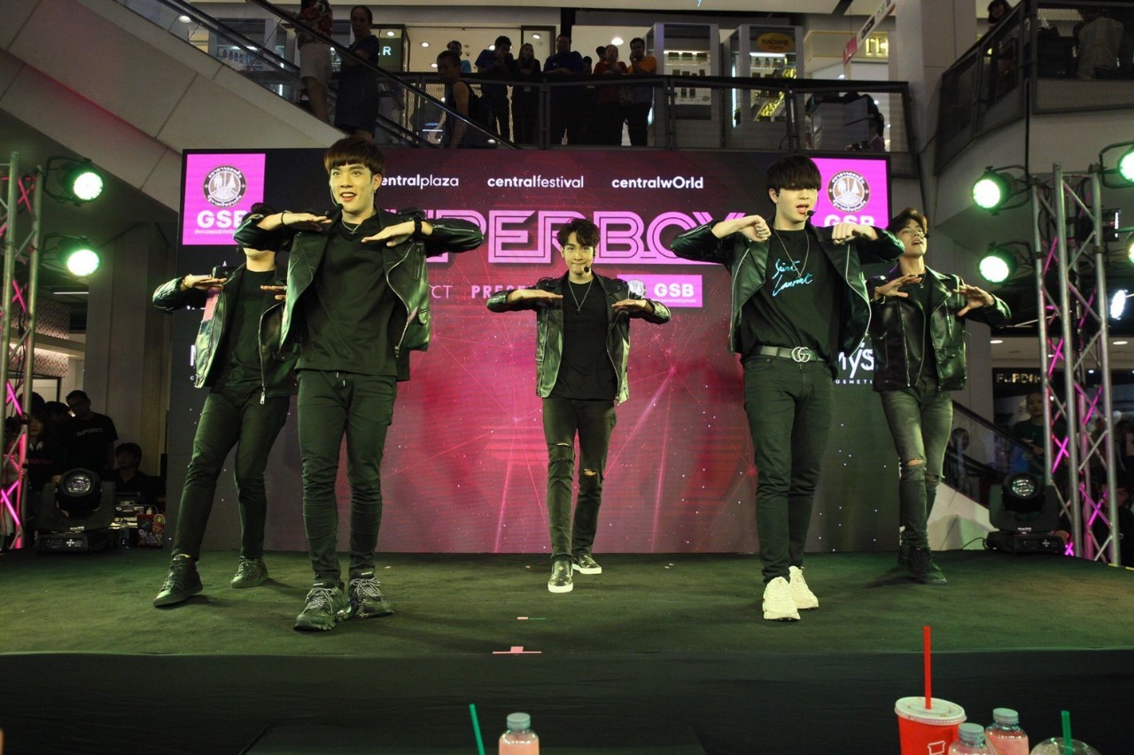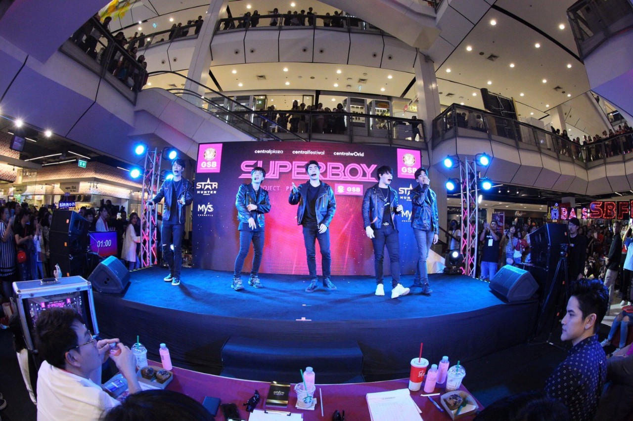 งานนี้ ศิลปินต้นแบบ 5 หนุ่ม SBFIVE บาส – คิมม่อน – เต้ – คอปเตอร์ – ตี๋ เลยขอเบรกด้วยการโชว์สเต็ปแดนซ์ ในเพลง Superboy ซิงเกิลล่าสุดที่นำมาใช้เป็นเพลงธีมในรายการ “Superboy Project Presented by GSB” เรียกเสียงกรี๊ด จากบรรดากองเชียร์สนั่นศูนย์การค้าเซ็นทรัลพลาซา จังหวัดขอนแก่น
