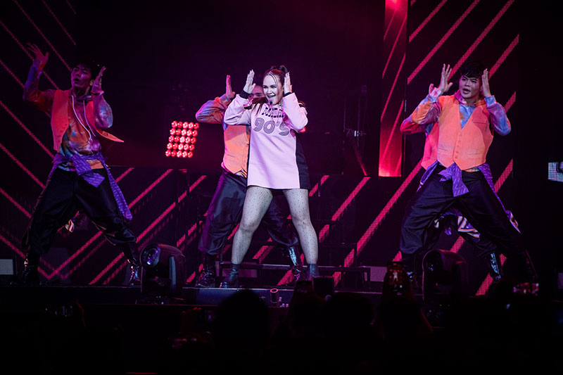 ถึงเวลาเข้าสู่โหมดแดนซ์นอนสต๊อป ที่เวทีต้องลุกเป็นไฟเมื่อตำนาน Girl Group แด๊นซ์ไฟลุก ก้าวขาขึ้นมาเร่งจัวหวะให้คนดูต้องทิ้งเก้าอี้ลุกมาแดนซ์ไม่ยั้งกันอีกรอบ ไทรอัมพ์ส คิงดอม ชวนทุกคนหยิบผ้าช็ดหน้า ออกมาโบกสะบัดกันแบบใกล้ชิดบนเวทีมินิสเตจกลางฮอลล์ ต่อด้วยเพลง ล่ำบึ้ก และ อย่าเข้าใจฉันผิด
