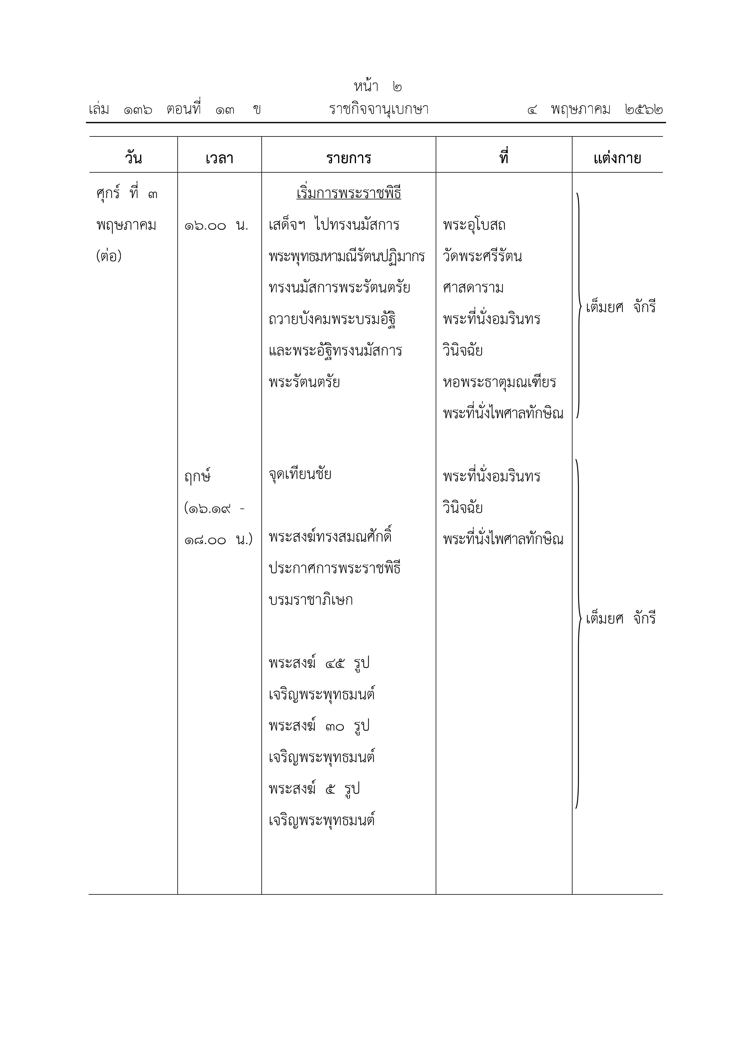 ประกาศสำนักพระราชวัง ให้ตั้งการพระราชพิธีบรมราชาภิเษก ในวันที่ 4-6 พฤษภาคม 2562