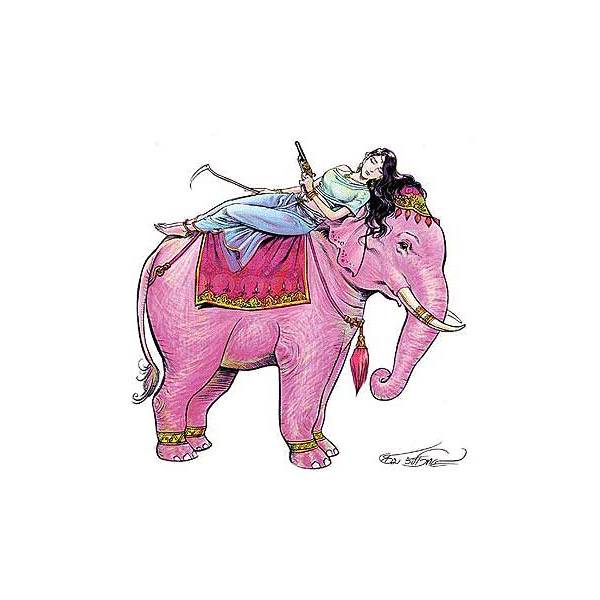นางกิริณีเทวี ทรงพาหุรัดทัดดอกมณฑา อาภรณ์แก้วมรกต ภักษาหารถั่ว งา พระหัตถ์ขวาทรงขอ พระหัตถ์ซ้ายทรงปืน เสด็จไสยาสน์หลับเนตรมาเหนือหลังกุญชร (ช้าง) เป็นพาหนะ