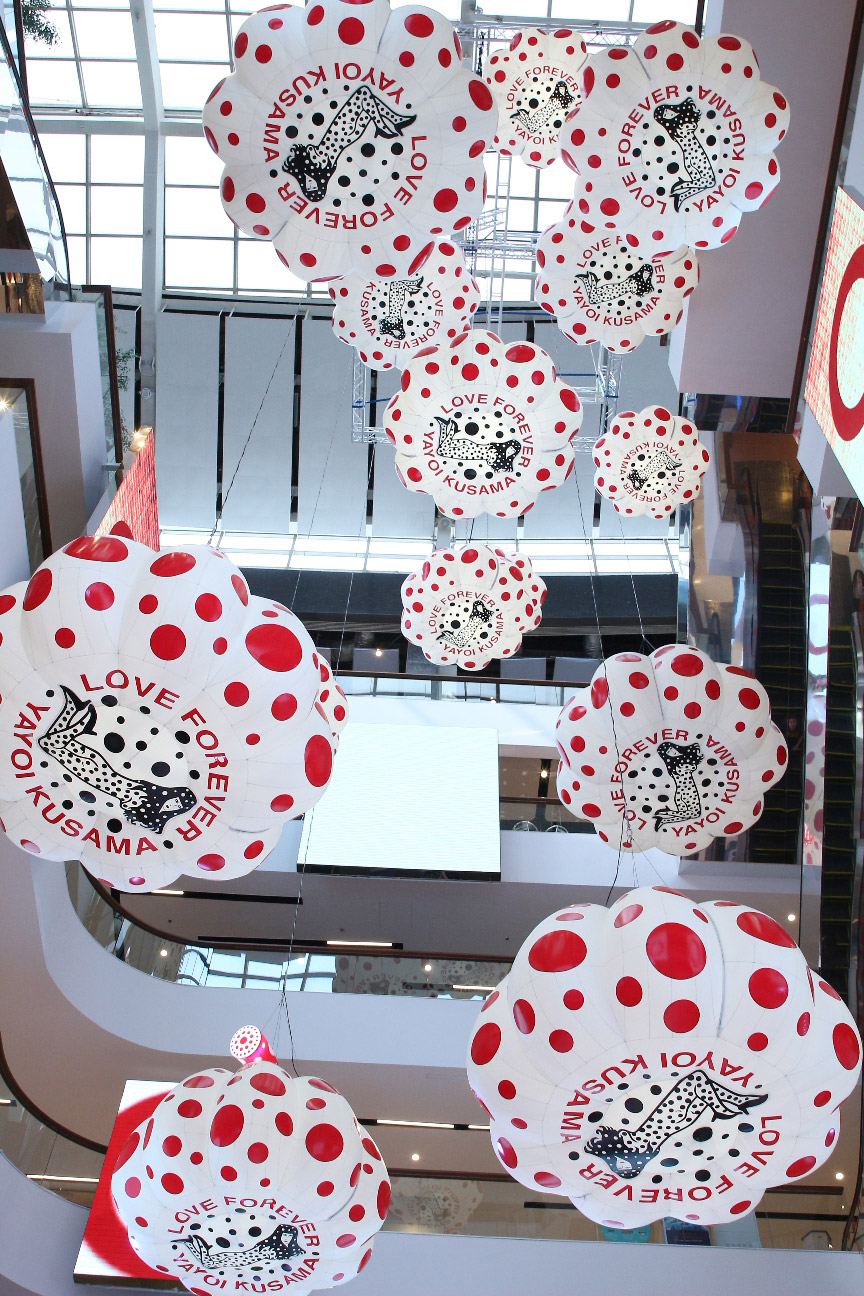งานประติมากรรมจัดวาง ฟักทองเป่าลม ของ ยาโยอิ คุซามะ ศิลปินระดับตำนาน