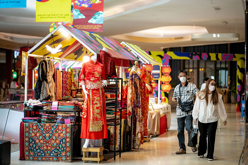 บรรยากาศภายในงาน เต็มไปด้วยสีสัน ที่ชวนทุกคนมาร่วมเฉลิมฉลองเทศกาลตรุษจีนปีขาลมหาเฮง ไปด้วยกัน ในคอนเซ็ปต์ ‘The Union of 8 Fortune Tigers’ เพื่อบอกเล่าเรื่องราวและแสดงให้เห็นถึง การรวมตัวกันของบรรดาเหล่าพยัคฆ์ โดยเริ่มต้นเสริมพลังชีวิตและความเป็นสิริมงคลตลอดปี กับ ‘เสือมงคล’ ขนาดใหญ่ที่สุดในโลก ยาวกว่า 6 เมตร สัญลักษณ์ของผู้ทรงอำนาจ ผู้นำเสริมบารมี ส่งเสริมธุรกิจการเจรจาให้สำเร็จลุล่วงราบรื่น ซึ่งสร้างความตื่นตาตื่นใจให้แก่ลูกค้าและผู้พบเห็น ที่บริเวณด้านหน้าศูนย์การค้าฯ ระหว่างวันที่ 25 ม.ค. – 13 ก.พ. 65
