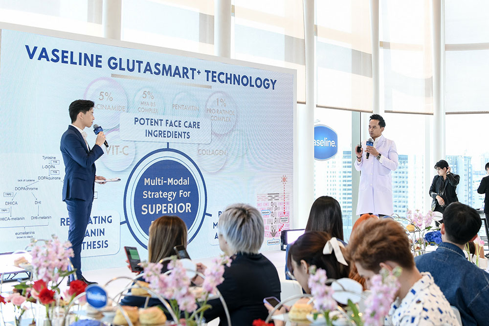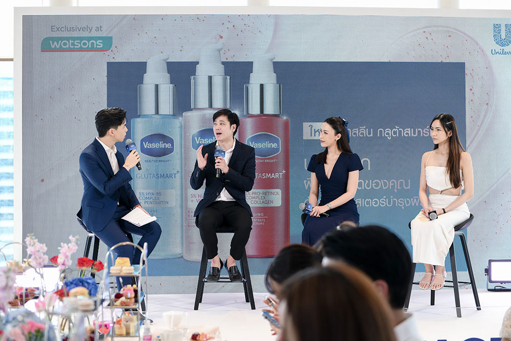 ภายในงานได้รับเกียรติจากผู้อำนวยการสำนักวิจัยและคิดค้นพัฒนา บริษัท ยูนิลีเวอร์ ประจำประเทศเอเชียตะวันออกเชียงใต้ ดร.อนุชัย สินสวัสดิ์ มาร่วมเผยเทรนด์ผิวสวยและนวัตกรรมความงามล่าสุดเพื่อเอาใจคนรักผิวโดยเฉพาะ พร้อมรับชมการสาธิตเทคโนโลยีเอกสิทธิ์เฉพาะของวาสลีน โดยการสาธิต (Live demo) นี้ได้สื่อให้เห็นว่า ผลิตภัณฑ์วาสลีน กลูต้าสมาร์ท+ เซรั่มบูสเตอร์ สามารถช่วยเร่งผลลัพธ์ความกระจ่างใส ได้ดีและเร็วกว่าโลชั่นบำรุงผิวทั่วไป รวมไปถึงสามารถช่วยแก้ปัญหาจุดด่างดำฝังลึกถึงผิวชั้นในได้ดีกว่า