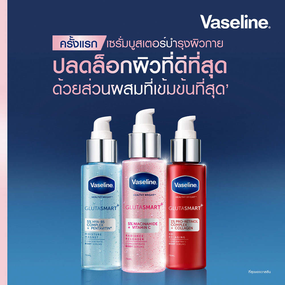 กลุ่มผลิตภัณฑ์ เซรั่มบูสเตอร์บำรุงผิวกาย “วาสลีน กลูต้าสมาร์ท+” ใหม่