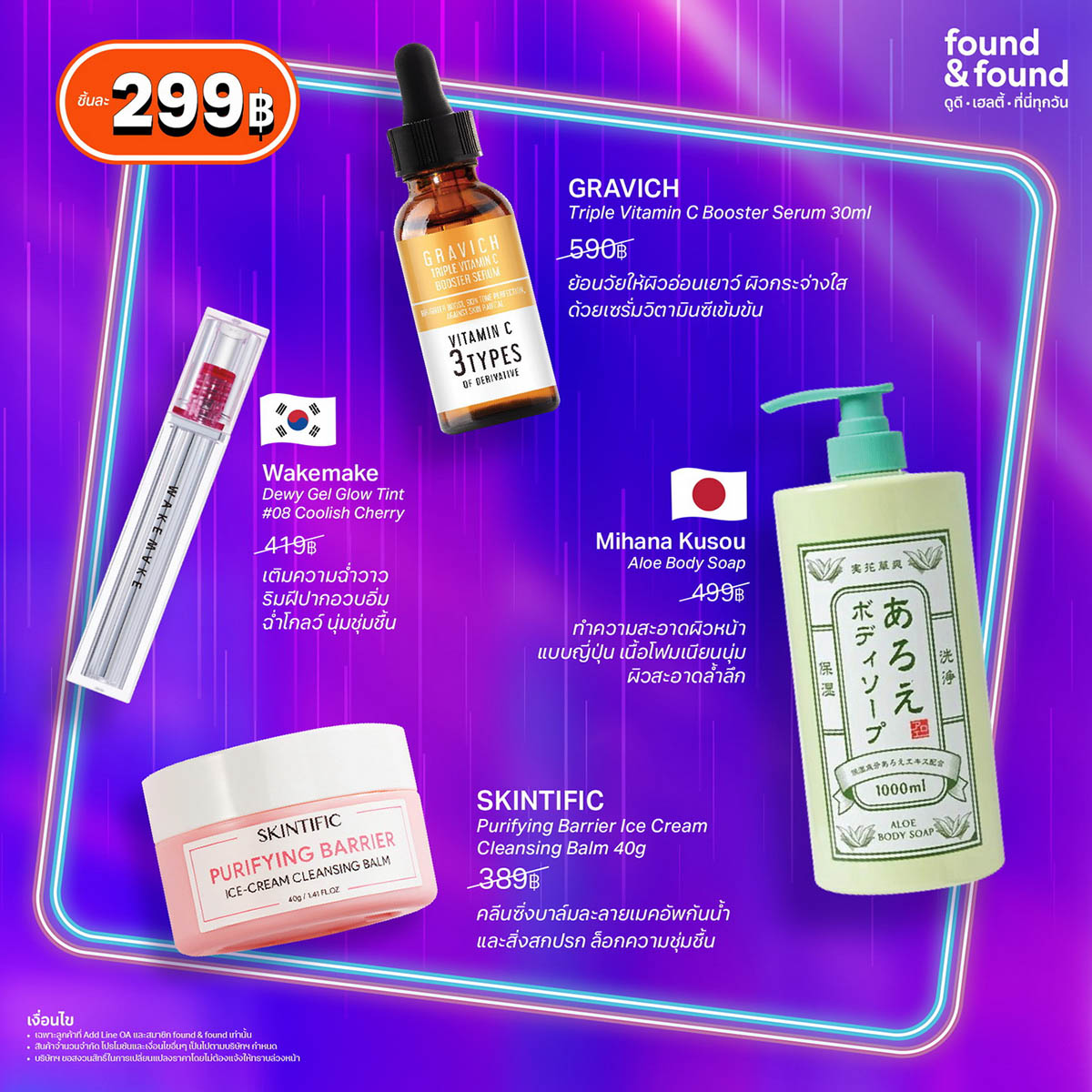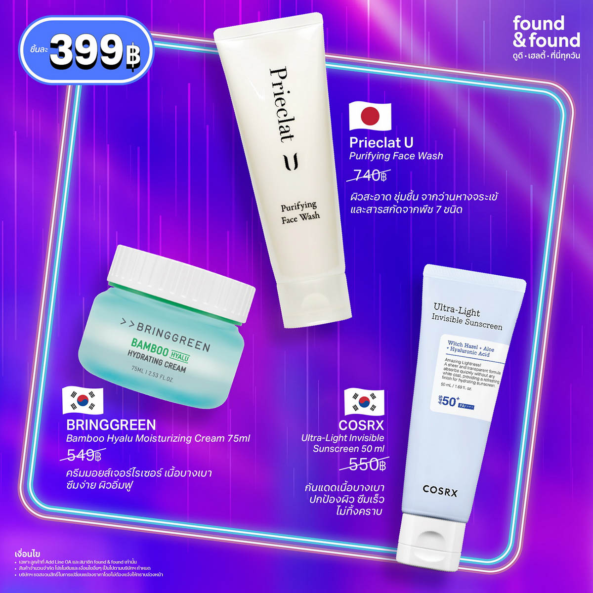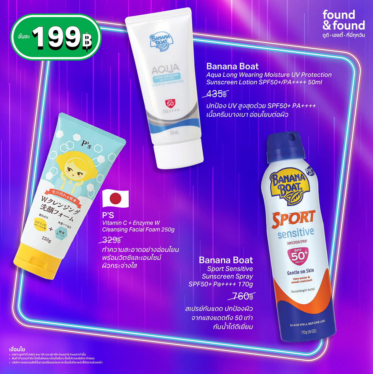 เตรียมลิสต์ให้พร้อมแล้วชวนเพื่อนไปช้อปกับไอเทมราคาพิเศษกันแบบจุใจ! จากแบรนด์ฮอตฮิตทั้งจากญี่ปุ่น เกาหลี ไม่ว่าจะเป็นไอเทมกันแดดสุดฮิตอย่าง Banana Boat, COSRX, มาส์กหน้า LuLuLun, คลีนซิ่ง SKINTIFIC, หรือ สบู่บำรุงผิวกาย Mihana Kusou Aloe Body Soap และอีกมากมาย จัดเต็มเพื่อสาย ช้อปโดยเฉพาะ ช้อปฟินได้แล้วที่ร้าน found & found ทุกสาขา ตั้งแต่วันที่ 1 – 30 กันยายน 2568 เท่านั้น! ของมีจำนวนจำกัด รีบไปจัดด่วน!