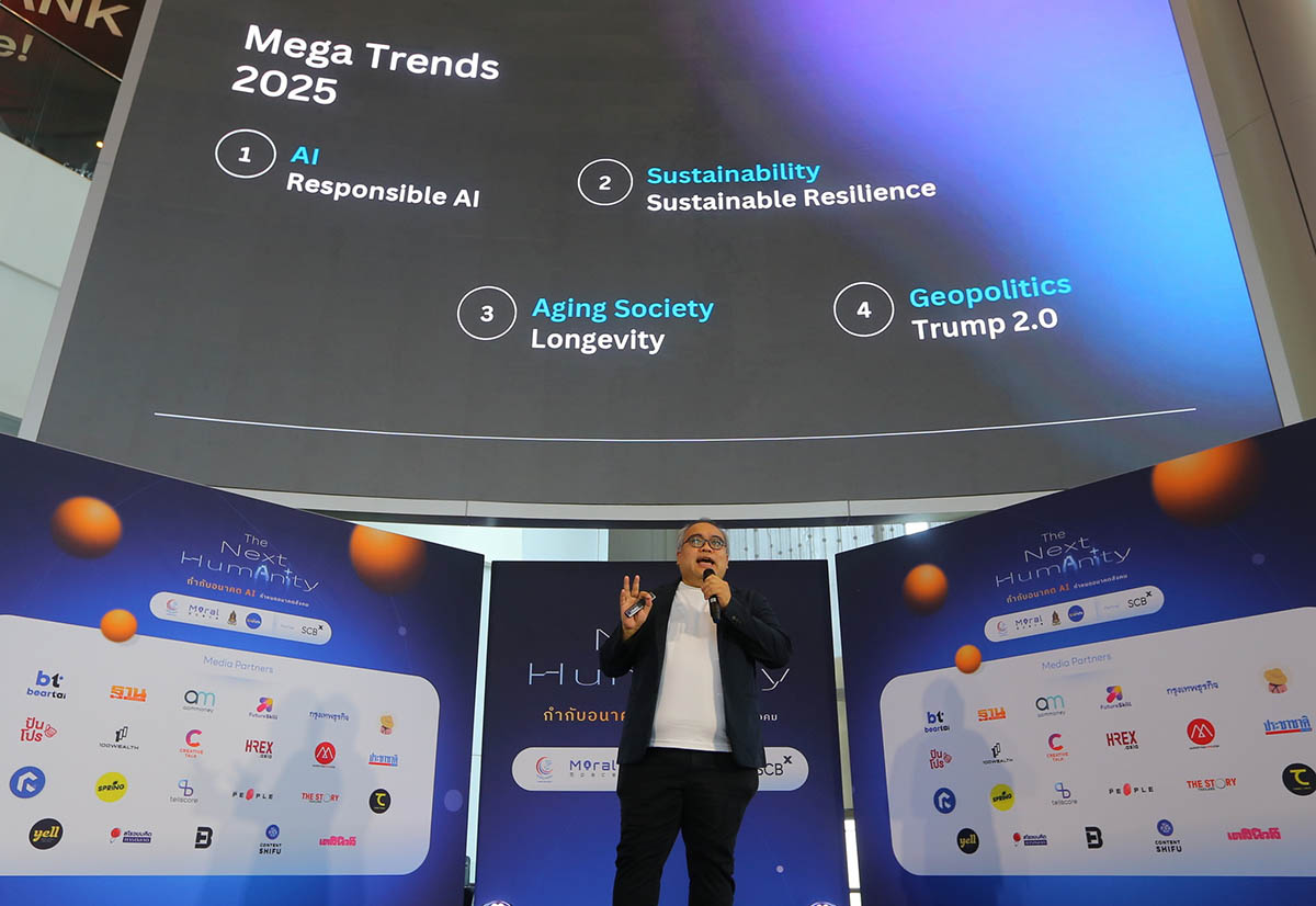 ในส่วนของกิจกรรมเสวนา Trends to Watch: Mega Trends Shaping The Next Humanity Mega Trends 2025: 4 เทรนด์กำหนดอนาคตมนุษยชาติ ณัฐกร เวียงอินทร์ Head of Content & Branding, Future Trends สรุป 4 เมกะเทรนด์สำคัญที่ต้องจับตา ได้แก่ AI ที่มีความรับผิดชอบ (Responsible AI) ซึ่งมาพร้อมความท้าทายด้านจริยธรรมและภัยจาก Deepfake, และ ความยั่งยืนที่พร้อมรับมือ (Sustainable Resilience) กับการเปลี่ยนแปลงสภาพภูมิอากาศ นอกจากนี้ยังมีเทรนด์ สังคมอายุยืนอย่างมีคุณภาพ (Longevity) ที่เน้นการมีสุขภาพกายและใจที่ดี และ ผลกระทบจากภูมิรัฐศาสตร์ (Geopolitics) ที่บีบให้ภาคเกษตรไทยต้องเร่งนำเทคโนโลยีมาปรับใช้เพื่อความอยู่รอด