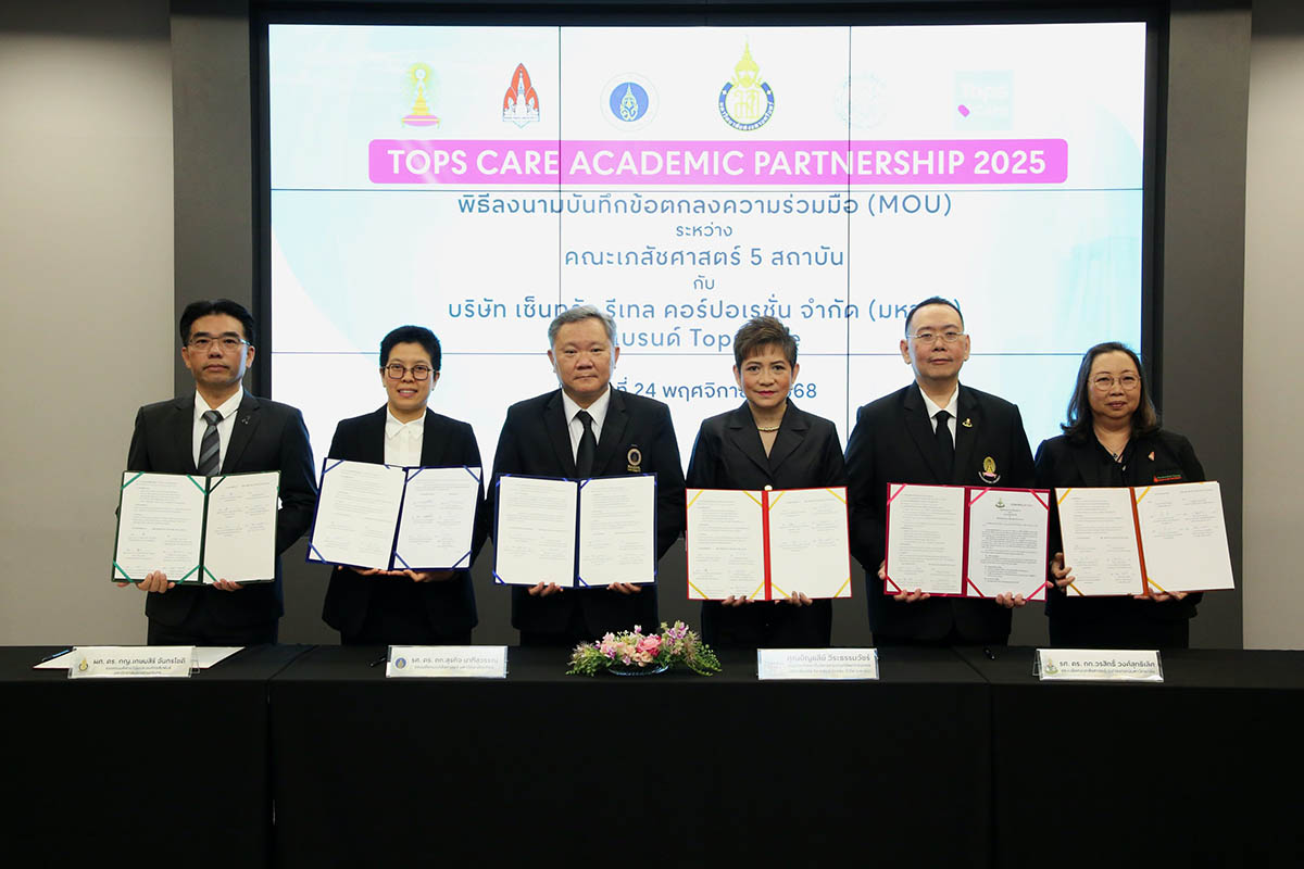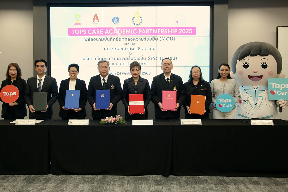จึงได้เดินหน้าผลักดัน โครงการ TOPS CARE Academic Partnership 2025 ร่วมกับเซ็นทรัล รีเทล และคณะเภสัชศาสตร์ จาก 5 สถาบันการศึกษาชั้นนำ ได้แก่ จุฬาลงกรณ์มหาวิทยาลัย, มหาวิทยาลัยขอนแก่น, มหาวิทยาลัยมหิดล, มหาวิทยาลัยสงขลานครินทร์ และมหาวิทยาลัยศิลปากร ซึ่งนับเป็นครั้งแรกในประเทศไทยที่ภาคเอกชนด้านร้านขายยาร่วมมือกับสถาบันการศึกษาภายใต้กรอบความร่วมมือระยะยาว เพื่อยกระดับมาตรฐานวิชาชีพอย่างเป็นระบบ และสอดคล้องกับเจตนารมย์ของเซ็นทรัลรีเทล ที่มุ่งสนับสนุนความร่วมมือครั้งนี้ให้เกิดประโยชน์ในระยะยาว พร้อมสร้างผลลัพธ์เชิงบวกต่อวงการเภสัชกรรม และเสริมการเติบโตของระบบสุขภาพไทยในอนาคตอย่างยั่งยืน