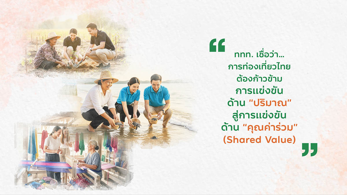 โดยปีนี้ ททท. ได้เชื่อมโยงการท่องเที่ยวแห่งประเทศไทย ภาคธุรกิจ ตลาดทุน และชุมชนท่องเที่ยวเข้าด้วยกัน ด้วยการจับคู่ 9 ชุมชนกับ 9 องค์กรภาคธุรกิจและตลาดทุน (ESG Co-Host) ที่มีเป้าหมายด้าน ESG สอดคล้องกัน เพื่อร่วมกันพัฒนาเส้นทางท่องเที่ยวเชิงคุณค่า (Value-based Tourism) ที่ลดผลกระทบทางลบ และสร้างผลกระทบเชิงบวกอย่างเป็นรูปธรรม ตลอดจนมุ่งเน้นการสร้างคุณค่าร่วมแก่ทุกภาคส่วนอย่างยั่งยืน ตอกย้ำแนวทางการพัฒนาการท่องเที่ยวจาก “เชิงปริมาณ” ไปสู่การท่องเที่ยว “เชิงคุณค่า” ตามนโยบาย “Value Over Volume” ซึ่งให้ความสำคัญกับคุณภาพของประสบการณ์ ผลลัพธ์ต่อชุมชน และผลกระทบต่อสิ่งแวดล้อมและสังคมในระยะยาว