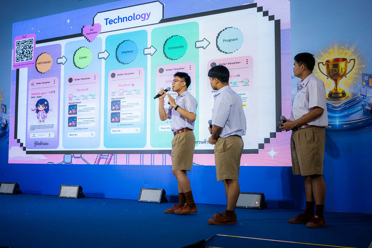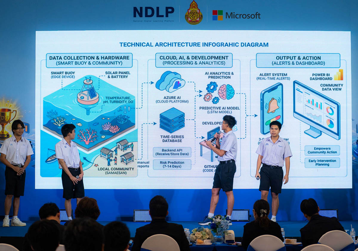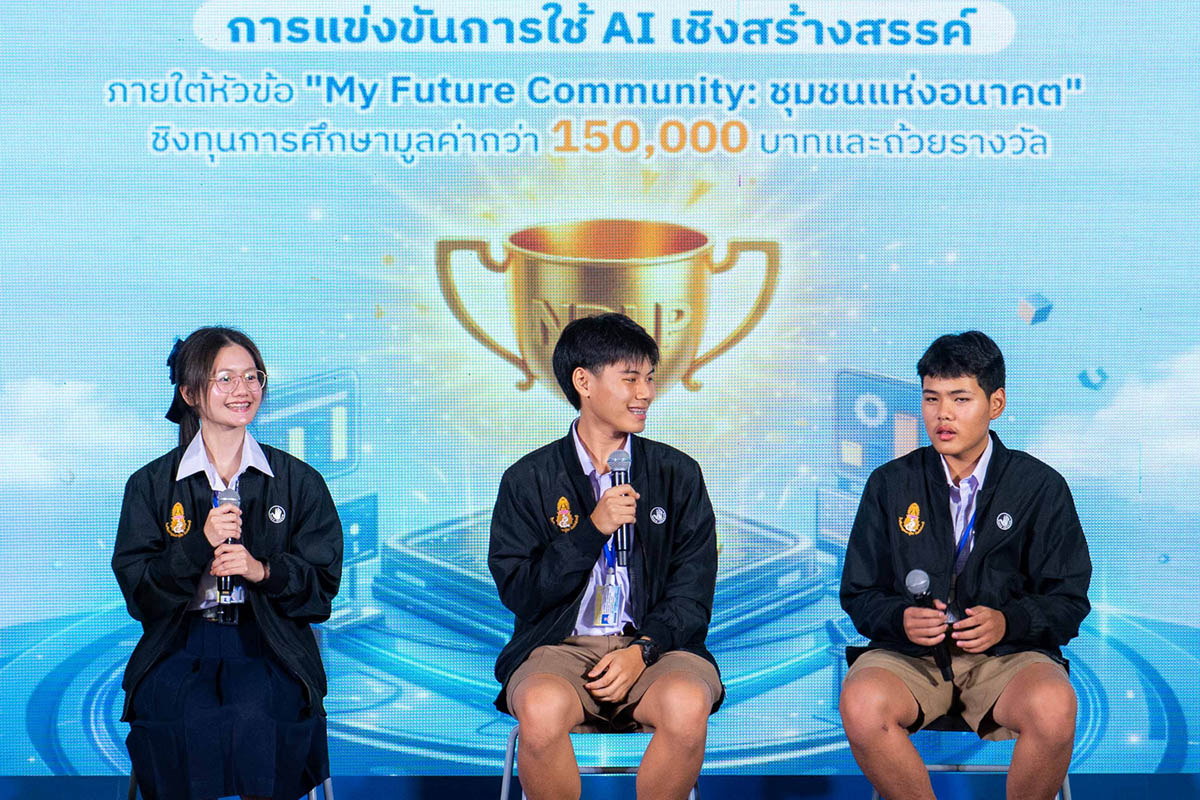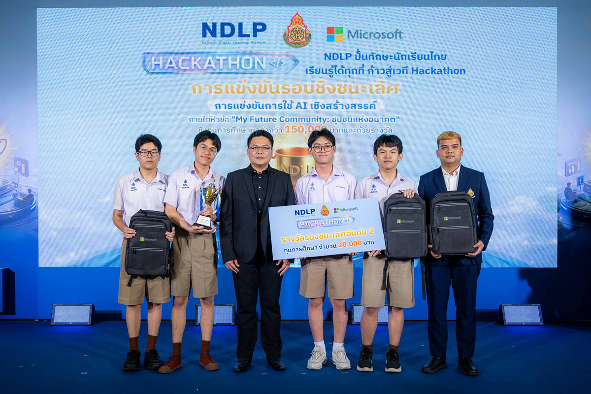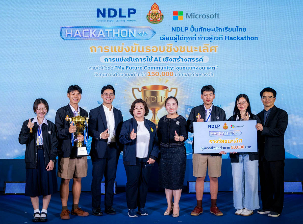 “My Future Community – ชุมชนแห่งอนาคต” ชิงทุนการศึกษามูลค่ากว่า 150,000 บาท ซึ่งถือเป็นก้าวแรกของความร่วมมือ โดยมุ่งเปิดโอกาสให้นักเรียนระดับมัธยมศึกษาตอนปลายจาก 1,018 โรงเรียนนำร่อง ทั่วประเทศที่ใช้แพลตฟอร์ม NDLP ได้นำทักษะ AI ระดับโลกมาคิดค้นแนวทางแก้ไขปัญหาจริงในชุมชนของตนเอง และคัดเลือกจนเหลือ 8 ทีมสุดท้ายเข้าสู่รอบชิงชนะเลิศ เพื่อพัฒนาทักษะการคิดวิเคราะห์ การแก้ปัญหาเชิงสร้างสรรค์ใน Hackathon Workshop เรียนรู้ในการสร้าง pitch deck ไอเดียการแก้ไขปัญหาและสร้าง Smart Community รวมถึงได้รับคำแนะนำจากผู้เชี่ยวชาญอย่างใกล้ชิด ก่อนถึงวันแข่งขันรอบชิงชนะเลิศ