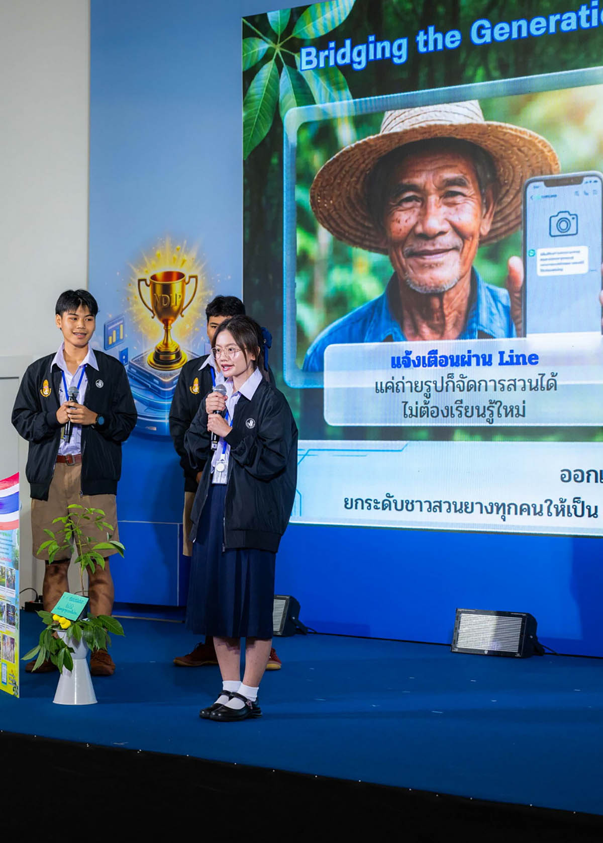 แนวคิดจากปัญหาคือ: เมื่อฝนตกมักจะเกิดความไม่สะดวกและปัญหามากมายต่อเกษตรกร เป็นสาเหตุหนึ่งให้คนรุ่นใหม่ไม่ยอมทำงานสวนยาง และหันไปทำงานโรงงานแทน ส่งผลให้ต้องจ้างแรงงานภายนอกในราคาสูงและหายาก ผลลัพธ์คือกรีดยางไม่ทัน น้ำยางลดลง และคุณภาพตก Solutionที่ผู้ชนะสร้างขึ้นคือ ใช้AI ช่วยเพิ่มผลผลิต 20–50% ลดการสูญเสียจากโรค ใบร่วง ลดการจ้างแรงงานราคาแพง และป้องกันการโค่นต้นยาง ผลลัพธ์ที่คาดหวัง คือ ชาวสวนมีรายได้มั่นคงและยั่งยืน ชุมชน กลายเป็น Smart Agri Community ที่ใช้เทคโนโลยีจริง ลดปัญหา แรงงานสูงวัย และรักษาพื้นที่สวนยางให้คงอยู่