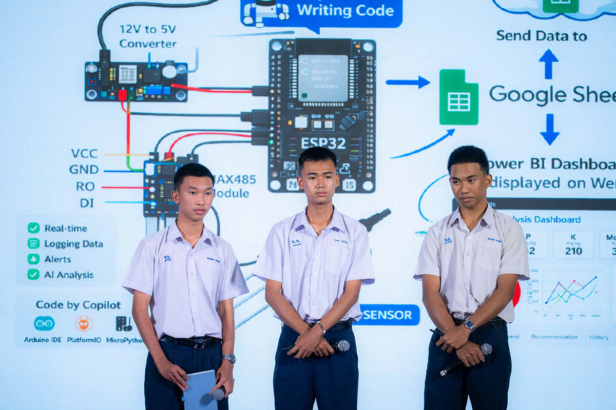 รางวัลรองชนะเลิศอันดับ 1 คือทีม “KKS re NPK” รร.ขุขันธ์ (ศรีสะเกษ) ผลงาน: Smart Fertilizer Management ช่วยตรวจสภาพดินและแนะนำสูตรปุ๋ยที่เหมาะสม ช่วยลดต้นทุน เพิ่มคุณภาพผลผลิต และส่งเสริมการเกษตรอย่างยั่งยืน ทุนการศึกษา จำนวน 30,000 บาท