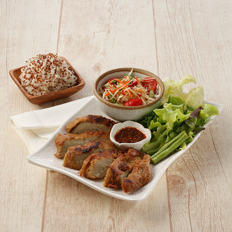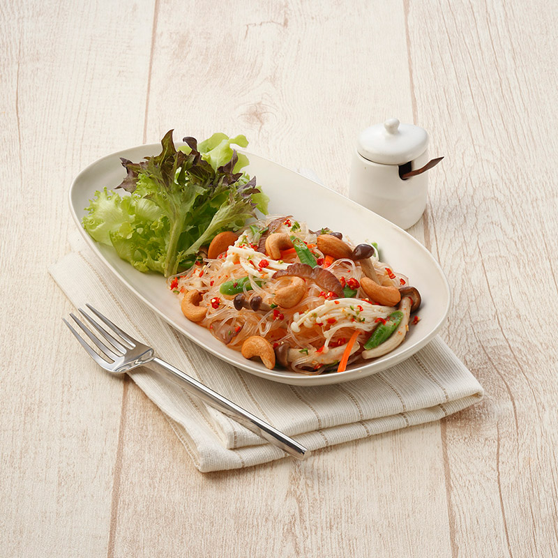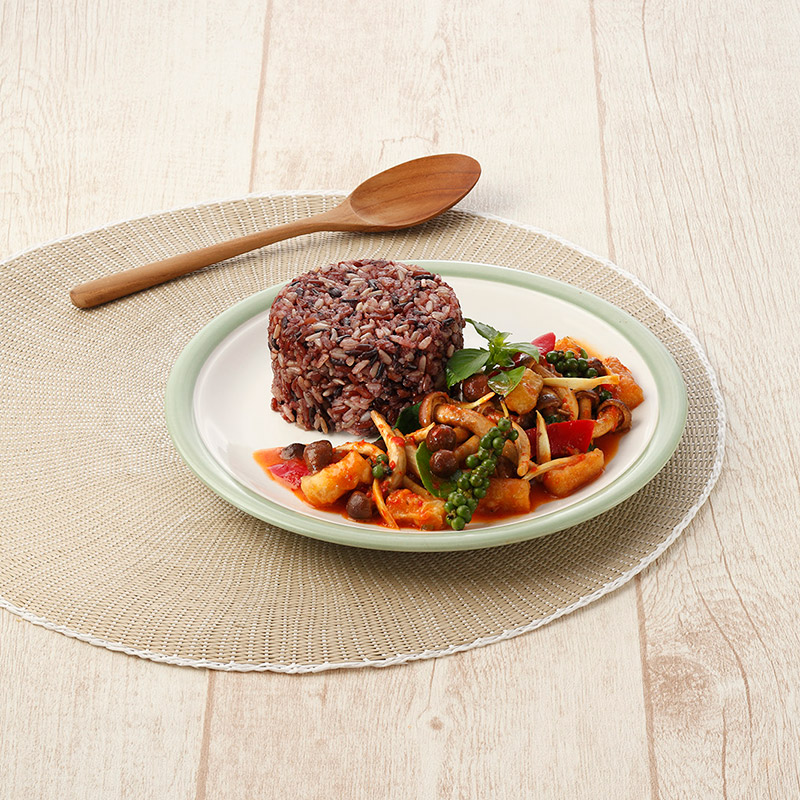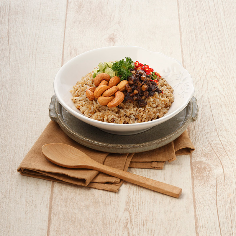 หลากหลายคุณประโยชน์จากเห็ดชิเมจิ เห็ดโคนญี่ปุ่น และเต้าหู้ทอด นำมาผัดฉ่าหอมเครื่องสมุนไพร รสชาติจัดจ้าน เสิร์ฟพร้อมข้าวกล้องงอกที่มีสารช่วยบำรุงระบบประสาท และสารต้านอนุมูลอิสระ และเมนูจากคีนัว เมล็ดพืชคุณประโยชน์สูงที่ถูกยกให้เป็น “ซุเปอร์ฟู้ด” เพราะอุดมไปด้วยสารอาหารที่มีประโยชน์ มีไฟเบอร์สูงกว่าข้าวกล้องถึง 2 เท่า