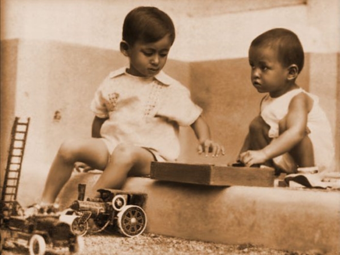 ภาพในหลวงทรงพระเยาว์ สมเด็จเจ้าฟ้ามหิดลอดุลเดช กรมหลวงสงขลานครินทร์ทรงอุ้มในหลวงตอนยังเป็นทารก