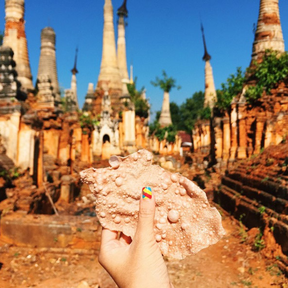 เวลาจะไปเที่ยวในแต่ละครั้ง หลายคนชอบถ่ายรูปวิวทิวทัศน์รอบข้างมากกว่าถ่ายรูปตัวเอง และนี่คืออีกตัวอย่างไอเดียสร้างสรรค์ ที่จะทำให้ภาพในอินสตาแกรมของเรามีกิมมิคเท่ๆ น่าสนใจ นั่นคือการใช้มือที่ทาเล็บสีน่ารักๆ จับสิ่งของสักชิ้น ถ่ายรูปกับแลนด์มาร์ค หรือเอกลักษณ์ประจำถานที่นั้นๆ ถือว่ายิงปืนนัดเดียได้นกสองตัว จาก IG : girleatworld