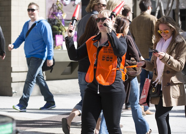 ยุคนี้เดินไปไหนมาไหน หากเราลองสังเกตมองรอบๆ ตัว ภาพที่จะเห็นกันบ่อยๆ ก็คือ ผู้คนในสังคมส่วนมากจะก้มหน้าก้มตาอยู่กับพวกอุปกรณ์ Smart Device อาทิ สมาร์ทโฟน แท็บเล็ต เพราะเมื่อมันเชื่อมต่อกับอินเทอร์เน็ตแล้ว ผู้ใช้ก็จะสามารถหาสิ่งต่างๆ ที่ต้องการได้อย่างรวดเร็ว ไม่ว่าจะติดต่อสื่อสาร หาข้อมูลสาระความรู้ ทำงาน เดินทาง ทำธุรกรรม ฯล เรียกได้ว่าอำนวยความสะดวกให้แทบจะครบทุกอย่างให้กับมนุษย์ หลายๆ คนถึงกับเสพย์ติด แบ่งเวลาในการเล่นไม่ได้ แม้กระทั่งเวลาข้ามถนน ซึ่งอาจจะก่อให้เกิดอันตรายได้ แต่ล่าสุด! ที่นิวยอกร์ก ได้เกิดไอเดียคนทำอาชีพ Seeing Eye People คนนำทางสำหรับ ผู้ที่เสพยติดการเล่นโซเชียล ขึ้นมา เขาจะบริการกันอย่างไรบ้างนั้น ตามมาชมภาพกันเลยค่ะ
