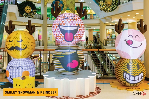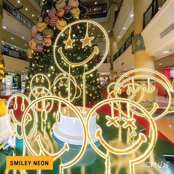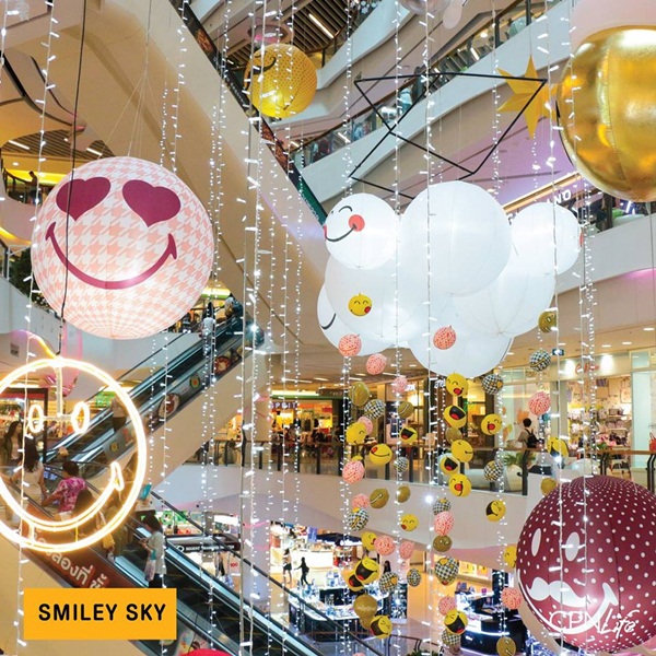 ปีนี้ภายในห้างสรรพสินค้าเซ็นทรัลจัดธีม Smiley ไอคอนลูกบอลน่ารักยิ้มแป้น โดยจะแบ่งการตกแต่งออกเป็นหน้าในอารมณ์ต่างๆ วางตามจุดต่างๆ ของห้าง ตัวคาแรคเตอร์อาจจะไม่ได้มีเหมือนกันทุกห้าง แต่จัดเต็มความน่ารักแน่นอนค่ะ นอกจากนี้ก็ยังมีพรอพอื่นๆ เช่น ต้นคริสมาสต์สูงใหญ่ โชว์การแสดงต่างๆ รวมไปจนถึงประตูลิฟท์ก็มีการตกแต่งด้วยไอคอน Smiley เรียกได้ว่ามีมุมให้ถ่ายรูปเยอะแยะไปหมด และสร้างความตื่นตาตื่นใจให้กับทุกคนได้แฮปปี้กันด้วย