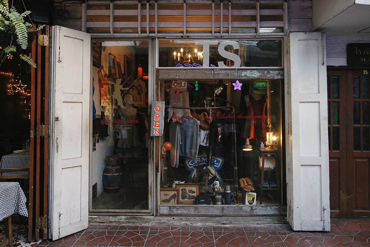 เมื่ออิ่มท้องแล้วก็ถึงเวลาเดินย่อย ทราบหรือไม่ว่าร้านเสื้อผ้าเครื่องแต่งกายที่ซ่อนตัวอยู่ตามย่านต่าง ๆ ในเกาะรัตนโกสินทร์มีของสวยเก๋เฉพาะตัวทั้งนั้น ไม่ว่าจะเป็นร้านเก่าแก่อายุหลายสิบปีที่ขายของคุณภาพดีมานาน หรือร้านใหม่ดีไซน์เก๋ที่เพิ่ง เข้ามาเติมเสน่ห์ให้พระนคร เตรียมเงินในกระเป๋าให้พร้อมแล้วออกไปตะลุยหาของเก๋ ๆ มาแต่งองค์ให้ครบเครื่องตั้งแต่หัวจรดเท้ากันเถอะ