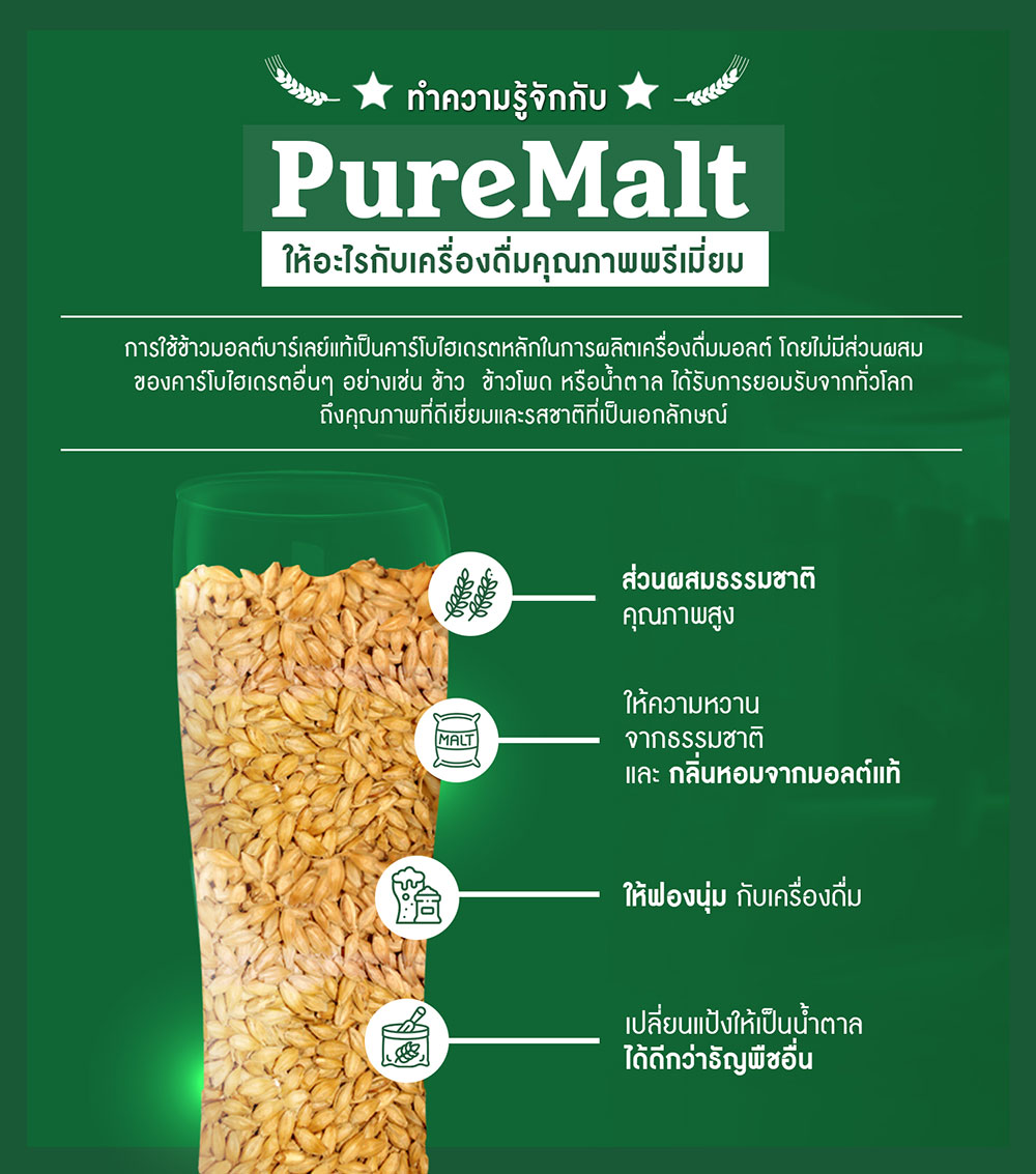 เพียวมอลต์ไม่ใช่เรื่องใหม่ แต่เป็นกฎในการผลิตของเครื่องดื่มคุณภาพพรีเมียมที่ให้รสชาติเพียว ๆ มอลต์เต็ม ๆ ของเครื่องดื่มมอลต์ทางฝั่งยุโรปมาอย่างยาวนาน