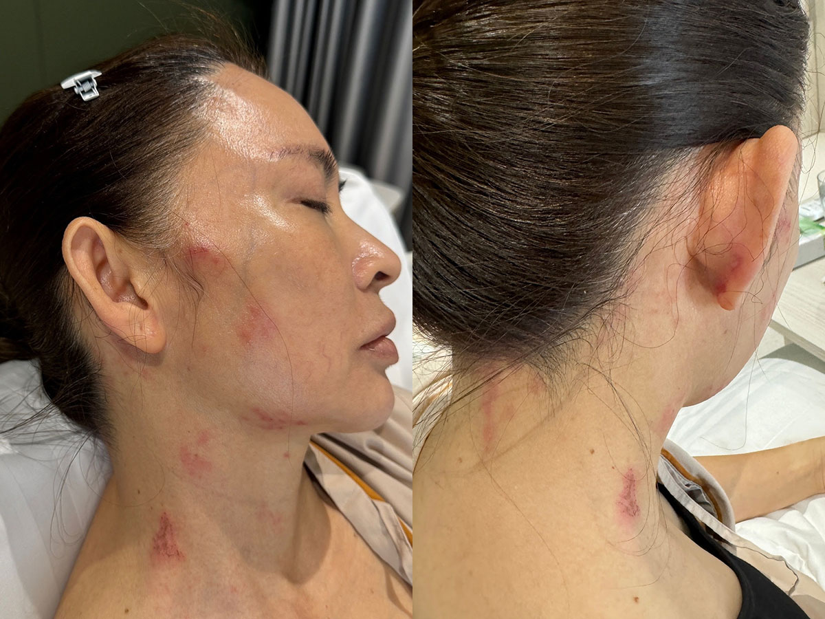 “จนกระทั่งเข้าสู่วันที่ 4 อาการปวดรุนแรงขึ้นเรื่อย ๆ ตอนนั้นปวดมากจนร้องไห้ ยืนไม่ไหว มือสั่น พูดไม่ไหว มีไข้ร่วมด้วย คุณหมอให้แอดมิททันที เพราะผื่นกำลังจะลามเข้าใบหน้า หู และดวงตา ไวรัสเริ่มลามไปเยอะ อาการเริ่มรุนแรงจนทนไม่ไหว คิดว่าถ้ามาโรงพยาบาลช้ากว่านี้ อาจไม่รอด ต้องรักษาอยู่โรงพยาบาลนานถึง 7 วัน