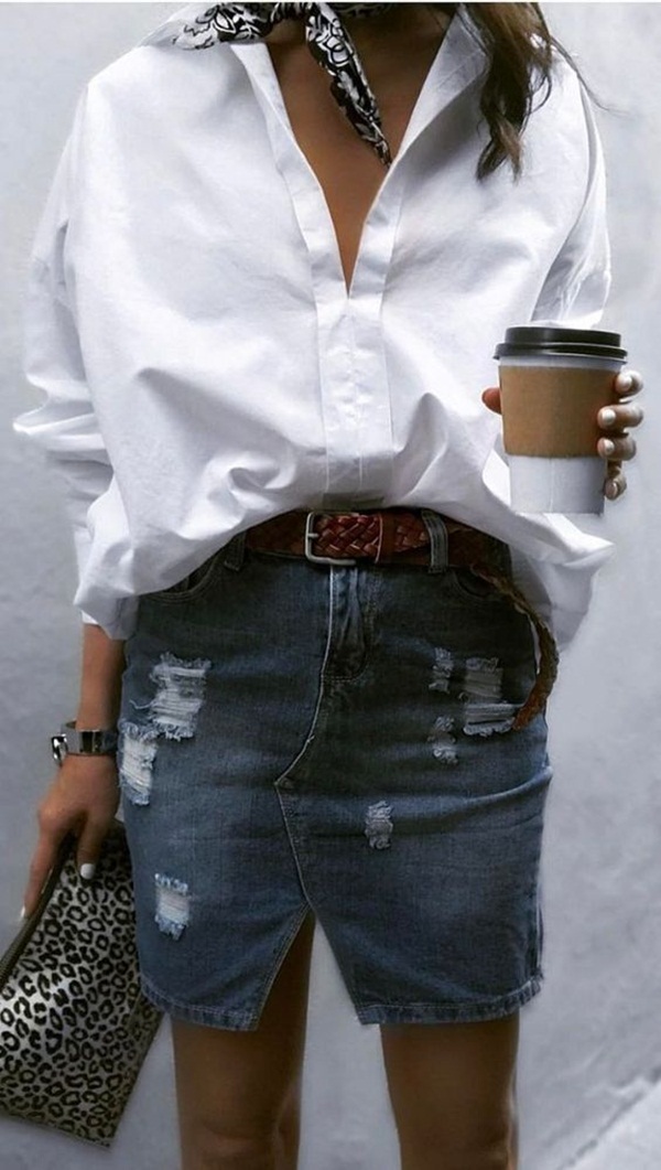 เชิ้ตขาวกับกางเกงยีนส์ขาสั้น ลุคนี้ก็ปลดกระดุมเหมือนลุคแรก เพิ่มความชิคด้วยเข็ดขัดเก๋ๆ