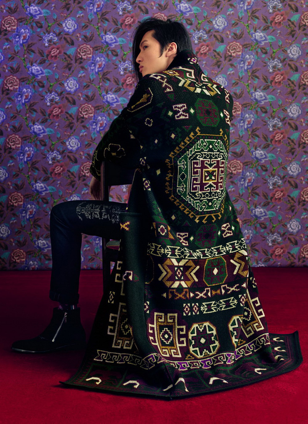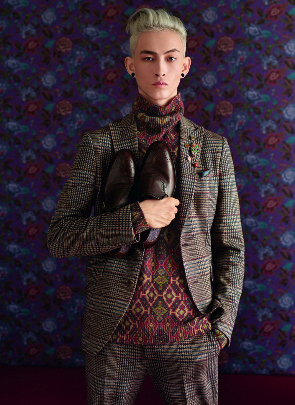 ลายผ้าแบบเปอร์เซียน (Persian) และ ลายเซลติก (Celtic) ลวดลายอันเป็นเอกลักษณ์ของชนเผ่าโบราณ ซึ่งถูกการออกแบบอย่างซับซ้อน โดยเกิดจากธรรมชาติ ต้นไม้ กิ่ง รากไม้ กลายมาเป็นลวดลายเฉพาะของชาวเซลติก ได้นำมาตีความหมายใหม่บนเสื้อโค้ทขนสัตว์ เสื้อพาร์ก้า และ เสื้อแจ็กเกตบอมเบอร์ผ้าแจ็คการ์ด ที่ถูกนำมาใช้ในคอลเลกชั่นนี้ บนเสื้อสูทเบลเซอร์เสื้อโค้ทตัวยาวที่ถูกตกแต่งด้วยลายใบไม้ ผ้ากำมะหยี่น้ำหนักเบาในโทนสีสว่างและลายพริ้นท์ ผ้าลูกฟูก ถูกนำมาทำกางเกงเสริมวอลลุ่มโทนสีสว่าง ที่เหล่าหนุ่มๆ ใส่ได้สบายแบบไม่มีเอ้าท์