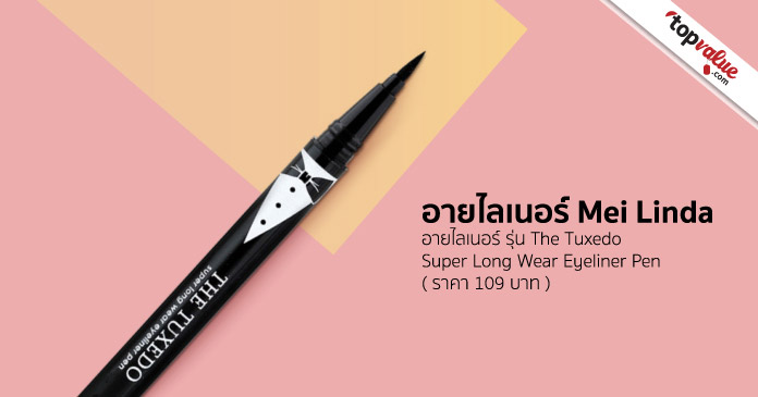 Mei Linda อายไลเนอร์ รุ่น The Tuxedo Super Long Wear Eyeliner Pen – Black อายไลเนอร์รูปแบบเมจิก ที่กันเหงื่อ กันน้ำ ติดทนแม้ในอากาศร้อน กรีดง่ายด้วยหัวแป็นฟองน้ำที่เรียวเล็กแบบพอดี ทั้งกรีดอายไลเนอร์แบบเส้นเรียว หรือ เส้นหนา แบบ cat eye ก็เอาอยู่ สาวๆที่ชอบเปลี่ยนลุคการแต่งหน้าบ่อยๆ ควรมีเป็นยาสามัญประจำบ้านเลยค่า