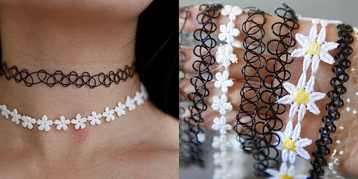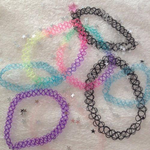 สร้อยคอ Tattoo Choker เป็นสร้อยคอที่เคยฮอตฮิตในหมู่วัยรุ่นยุค 90’s ซึ่งเขาจะนิยมใส่ไปเก๋ๆ ในงานปาร์ตี้กัน โดยลักษณะสร้อยจะเป็นเส้นเอ็นนำมาถักไขว้กันไปมา จุดเด่นของสร้อยสไตล์นี้คือ เวลาสวมใส่สวมจะติดบริเวณกลางลำคอเลย ไม่ได้ห้อยมาเหมือนสร้อยแฟชั่นทั่วๆ ไป มีหลากหลายสีสันให้เลือก แต่สีที่นิยมใส่กันมากก็คือ สีดำ ซึ่งดูแล้วจะลักษณะคล้ายรอยสักเล็กๆ คาดว่าจึงเป็นที่มาที่เรียกว่า Tattoo Choker
