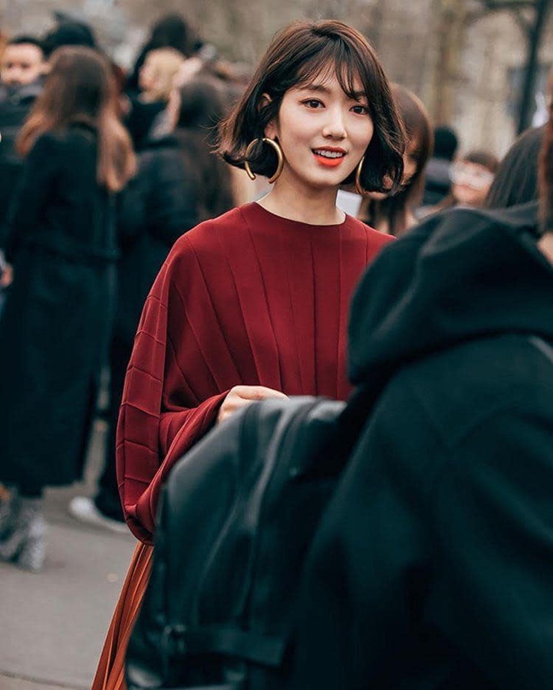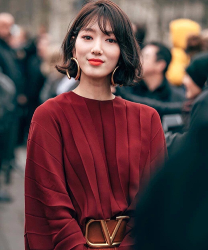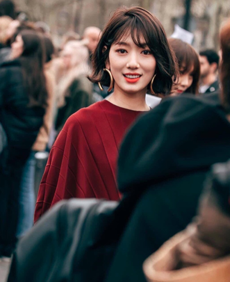 เป็นซุปตาร์เกาหลีที่ดูหน้าเด็กมาก ๆ สำหรับ พัคชินฮเย (Park Shin Hye) แม้อายุใกล้จะแตะเลขสามแล้ว ไม่ว่าอยู่ในลุคไหนก็น่ารักสดใสมากจริง ๆ แต่สำหรับลุคผมสั้นในงานปารีสแฟชั่นวีค 2019 เธอมาในลุคผมบ๊อบสั้น หน้าม้าซีทรู ปลายผมมีการดัดลอนเบา ๆ ใส่ต่างหูห่วงสีทอง ฉีกจากลุคน่ารัก ๆ ใส ๆ มาเป็นสาวสวยเก๋มีเสน่ห์สะกดสายตา ได้เลิศมาก ให้ล้านไลค์เลยสำหรับลุคนี้ สาว ๆ เห็นแล้วต้องอยากทำผมทรงนี้ตามกันแน่นอน