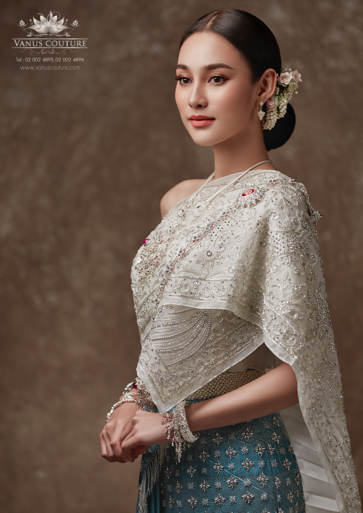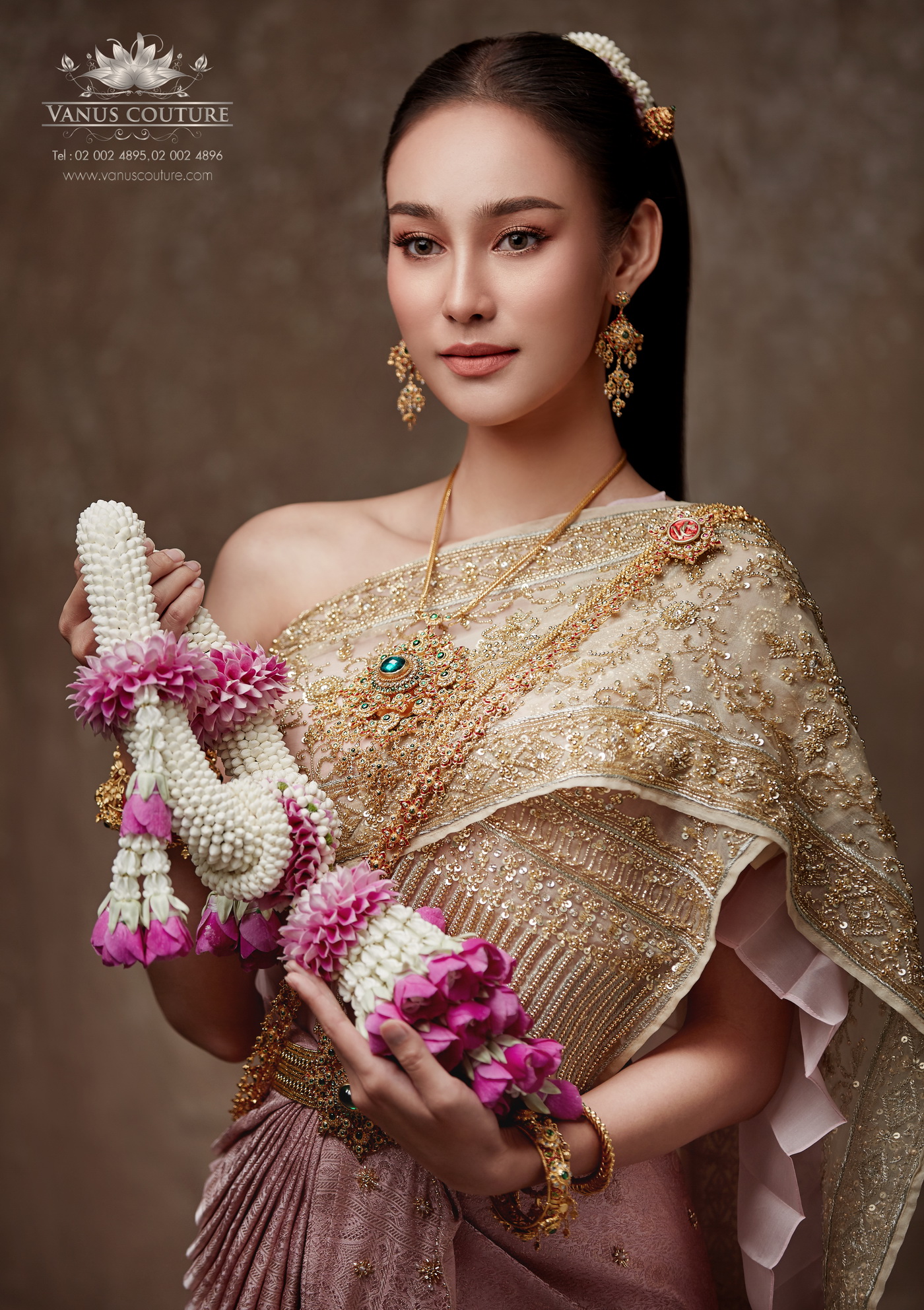 ยิ่งได้นางเอก สาวหน้าหวานสไตล์ไทย นาว-ทิสานาฏ ศรศึก จากวิกหมอชิต มาร่วมอวดโฉมคอลเลคชั่นนี้แล้ว ยิ่งทำให้ชุดไทยดูงามตาจับจิตจับใจมากขึ้นไปอีก จนไม่สามารถละสายตาไปจากเธอได้เลยทีเดียว นั่นเพราะชุดไทยทุกชุด ที่สาวนาวถ่ายทอดออกมานั้นเหมือนมีมนต์ขลัง ยิ่งมองยิ่งหลงใหลในความงดงามที่เฉิดฉายออกมาดั่งภาพวาดของสาวงามในอดีต รายละเอียดทุกอณูดูประณีตงดงามหมดจดจนหาที่ติไม่ได้ ซึ่งแสดงออกถึงความตั้งใจของผู้สร้างสรรค์ผลงานในคอลเลคชั่นนี้ได้อย่างดีทีเดียว
