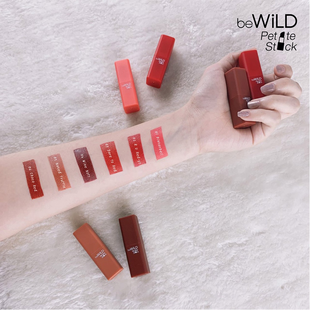 บีไวลด์ (beWiLD) แบรนด์เครื่องสำอางสัญชาติไทย ตัดริบบิ้นเปิดฤดูกาลร้อนแรงนี้ด้วยการเปิดตัวลิปสติกใหม่ล่าสุด beWiLD PETITE STICK (บีไวลด์ เปอติ๊ด สติ๊ก) รังสรรค์ลิปสติกไซส์มินิกะทัดรัด เนื้อ Semi Matte ทิ้งความแมตต์แบบเดิม ๆ เพิ่มพิกเม้นท์สีชัดแน่น ไม่ตกร่อง ด้วยสูตรพิเศษเฉพาะช่วยให้ริมฝีปากชุ่มชื้น เรียบเนียน มาพร้อมรูปแบบ Multi Use ดูโอคู่สี จะใช้เดี่ยวหรือเบลนด์คู่ก็ได้อย่างลงตัว สามารถครีเอทได้ 3 ลุค มีให้เลือกมากถึง 6 เฉดสี เพื่อเอาใจเรียวปากสวยมั่นใจของสาวเอเชียโดยเฉพาะ