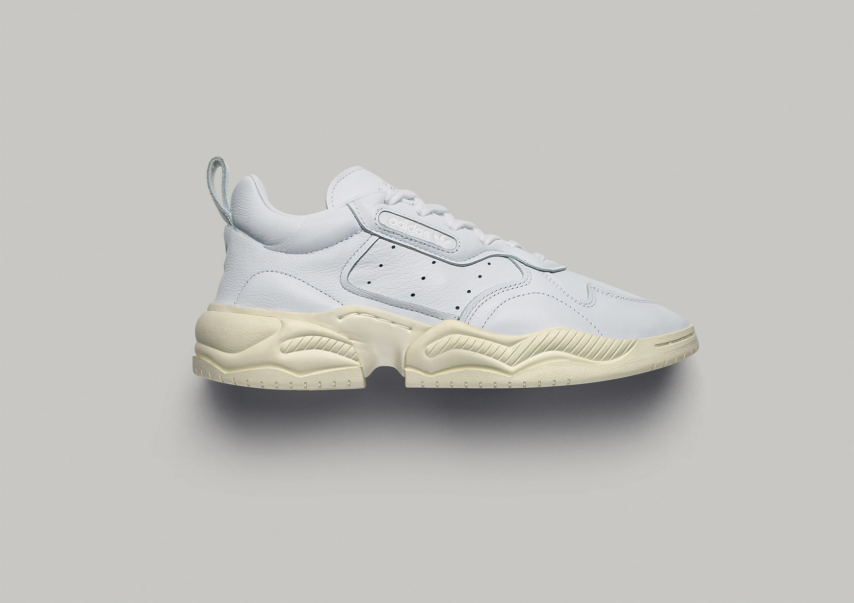 ปิดท้ายด้วยรุ่น Supercourt RX สนีกเกอร์ ที่ได้รับแรงบันดาลใจจากการเปลี่ยนแปลงผ่านกาลเวลาของรองเท้ากีฬาประเภทคอร์ททั้งหมดตั้งแต่อดีต ซึ่งถูกออกแบบมาในสไตล์คลาสสิกด้วยหนังสีขาว เน้นสี chalk white และสี raw white ความโดดเด่นอยู่ที่พื้นผิวบริเวณลิ้นรองเท้าจะมีความขรุขระ มาพร้อมกับ โลโก้ Trefoil อีกเช่นเคย ตรงส่วน outsole ถูกตกแต่งด้วยวัสดุคุณภาพชั้นดีมีสไตล์ที่ล้ำสมัย ทำให้ Supercourt RX มีความโดดเด่นและสะดุดตา ถือเป็นตัวแทนรองเท้าเทนนิสในอดีตที่จะมาสร้างปรากฏการณ์ใหม่ให้กับวงการแฟชั่น