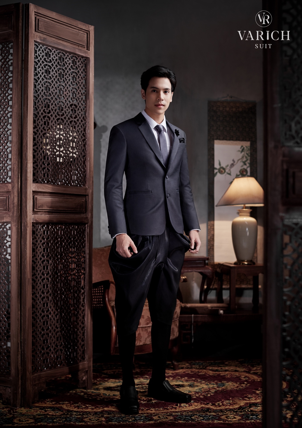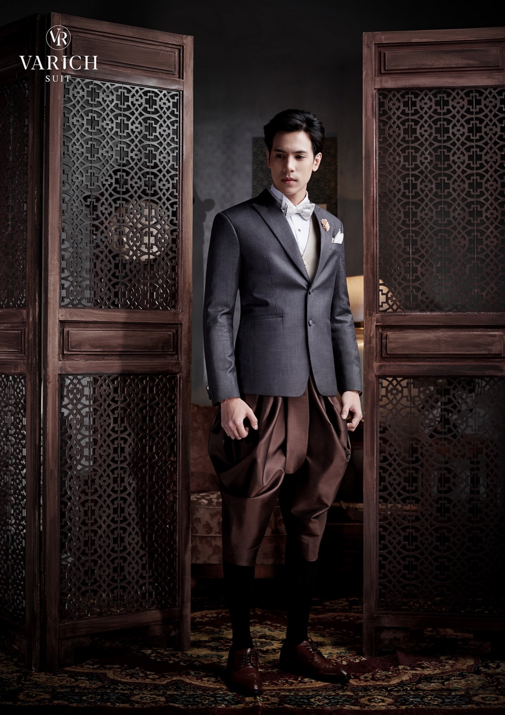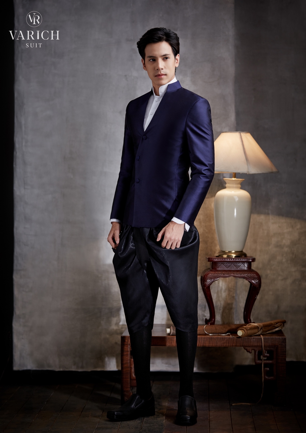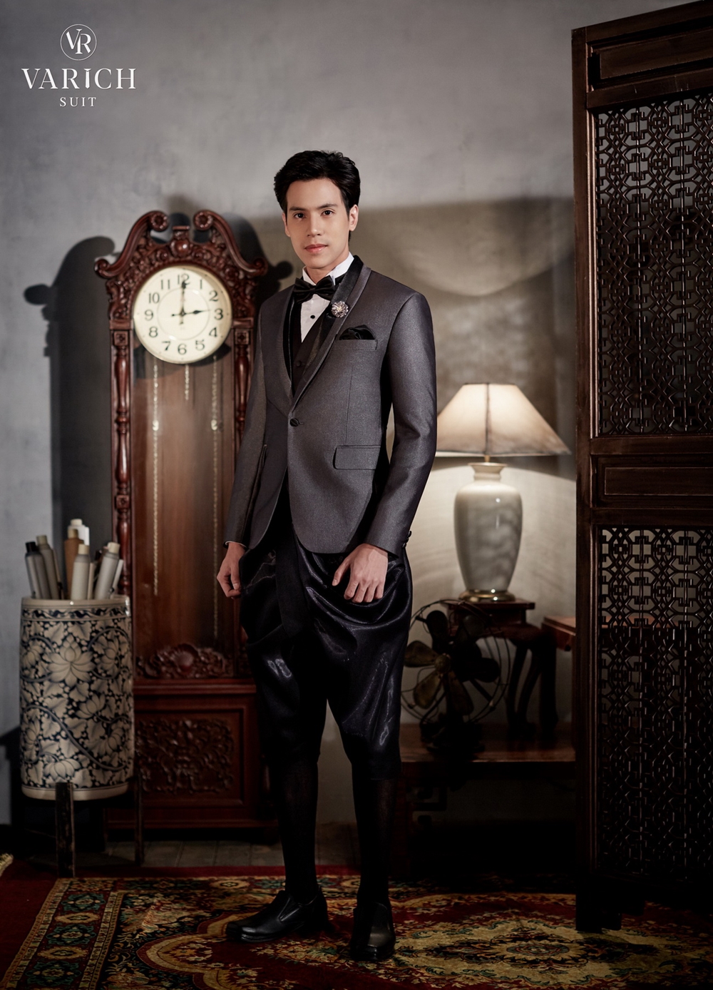 ด้านบนออกแบบตัวเสื้อเป็นสูทสากลทรงสลิมตัดเย็บจากผ้าวูเนื้อดีจากอิตาลี นำมามิกซ์แอนด์แมทช์กับโจงกระเบนผ้าไหมไทยเกรดพรีเมียมที่ผ่านการตัดเย็บอย่างประณีตงดงาม เป็นการผสมผสานที่ดูหรูหราและมีคลาสสุดๆ นอกจากนี้ยังคงมีชุดไทยโบราณอีกหลากหลายชุดที่ถูกออกแบบให้มีความเรียบหรูดูแพงไม่แพ้กัน เหมาะสำหรับเจ้าบ่าวยุคใหม่ที่มีรสนิยม และชื่นชอบความเป็นไทยแต่อยากมีสไตล์ในแบบของตัวเอง