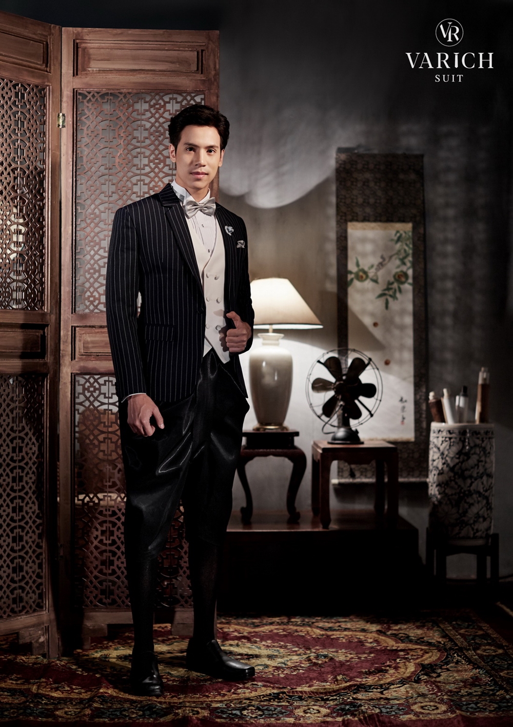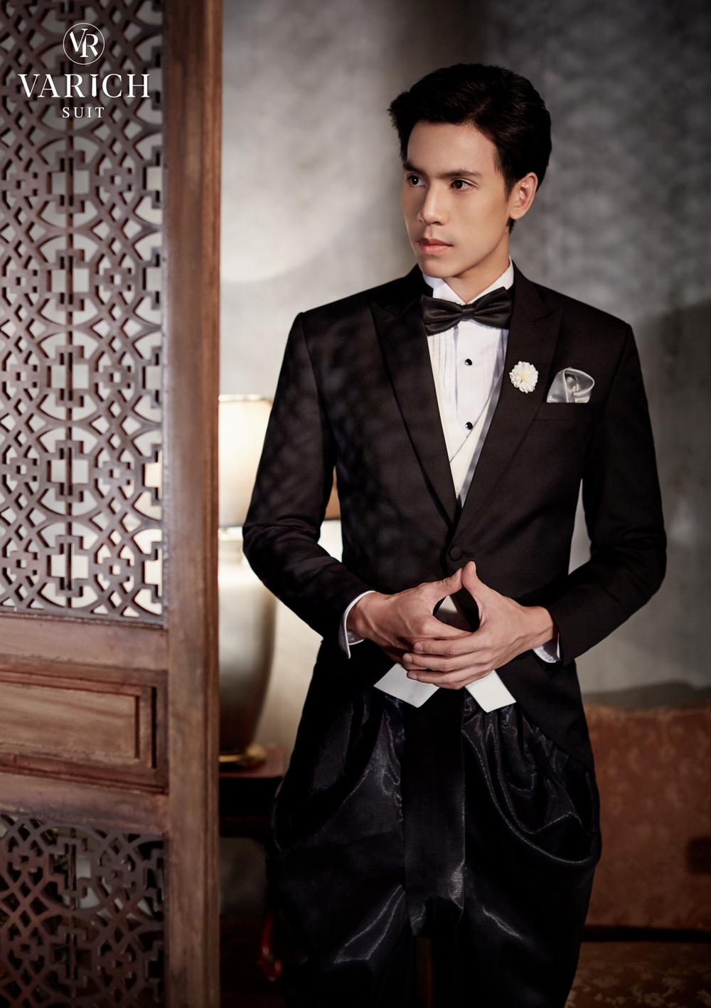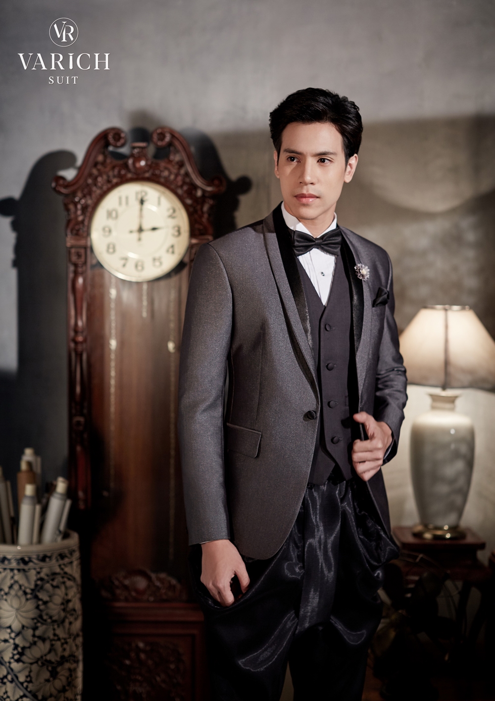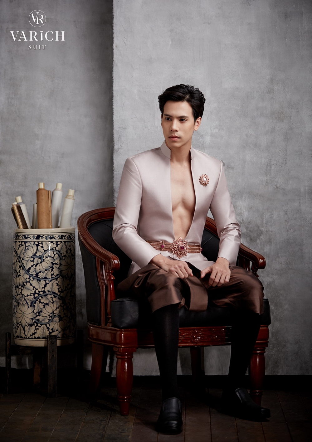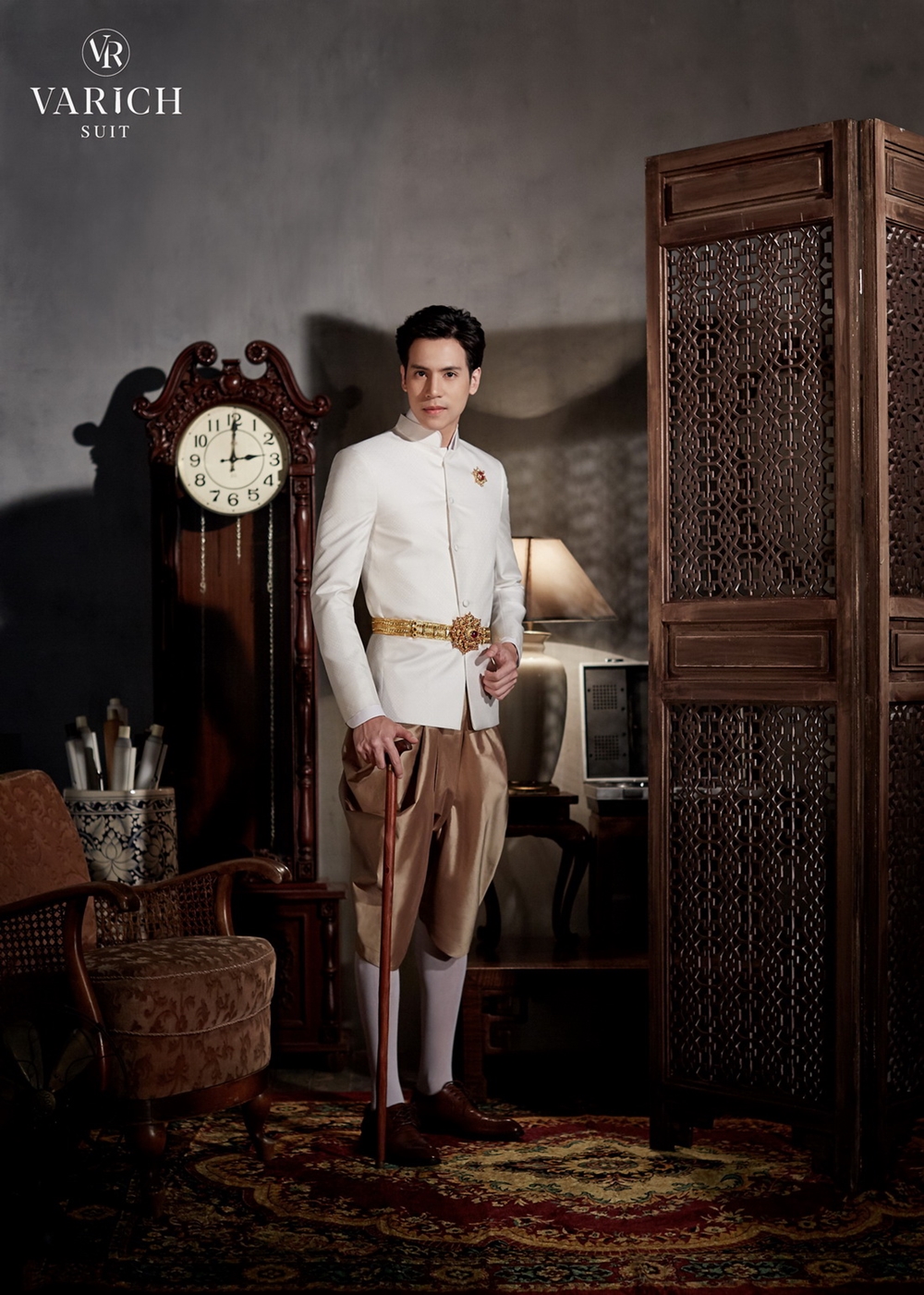 ด้านบนออกแบบตัวเสื้อเป็นสูทสากลทรงสลิมตัดเย็บจากผ้าวูเนื้อดีจากอิตาลี นำมามิกซ์แอนด์แมทช์กับโจงกระเบนผ้าไหมไทยเกรดพรีเมียมที่ผ่านการตัดเย็บอย่างประณีตงดงาม เป็นการผสมผสานที่ดูหรูหราและมีคลาสสุดๆ นอกจากนี้ยังคงมีชุดไทยโบราณอีกหลากหลายชุดที่ถูกออกแบบให้มีความเรียบหรูดูแพงไม่แพ้กัน เหมาะสำหรับเจ้าบ่าวยุคใหม่ที่มีรสนิยม และชื่นชอบความเป็นไทยแต่อยากมีสไตล์ในแบบของตัวเอง