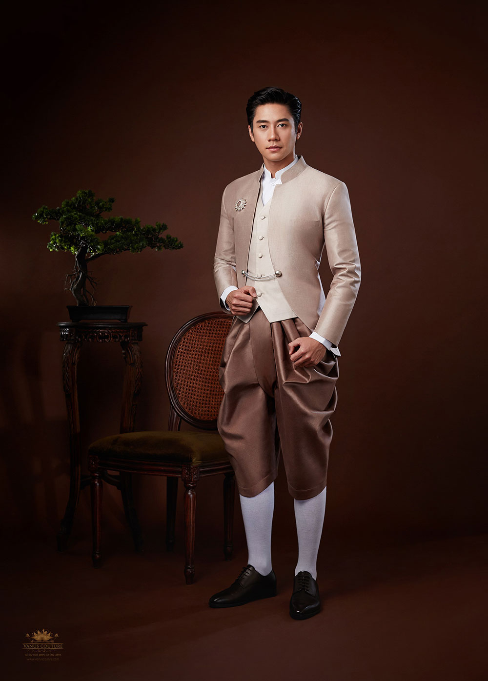 นอกจากนี้ยังได้ออกแบบชุดไทยสำหรับเจ้าบ่าวในแบบต่าง ๆ มาร่วมถ่ายทอดผลงานคู่กันอีกด้วย เพื่อให้เกิดมิติของภาพและบรรยากาศของคู่รักในจินตนาการที่งดงามสมกับแบรนด์ วนัช กูตูร์ ห้องเสื้อที่ขึ้นชื่อว่าเป็นห้องเสื้อชุดไทยดีไซน์ใหม่ยอดนิยมที่สุดแห่งยุคนี้
