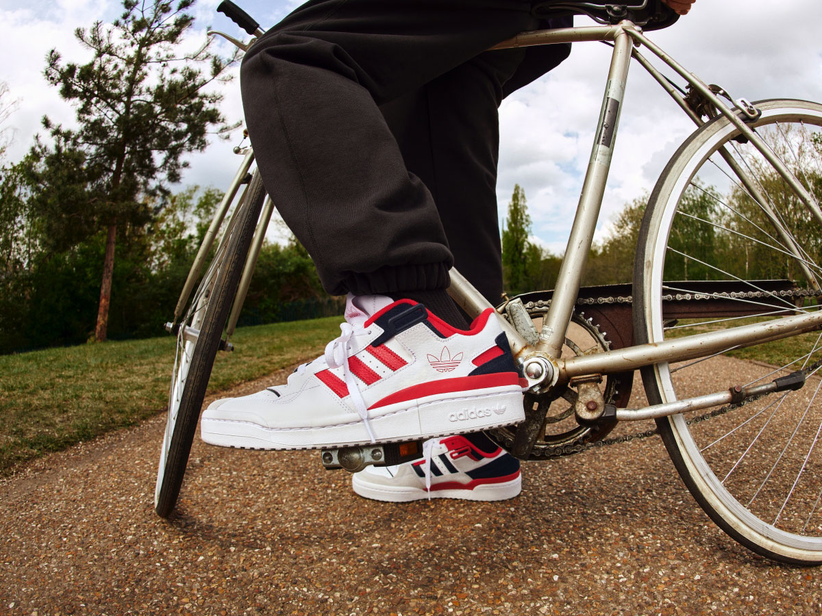 ปิดท้ายด้วย FORUM LOW ที่ยกระดับความเก๋าขึ้นไปอีกขั้นด้วยสีขาว สีกรมท่า สีแดง และสีเหลือง โดยมีแรงบันดาลใจจากกีฬาบาสเก็ตบอล
