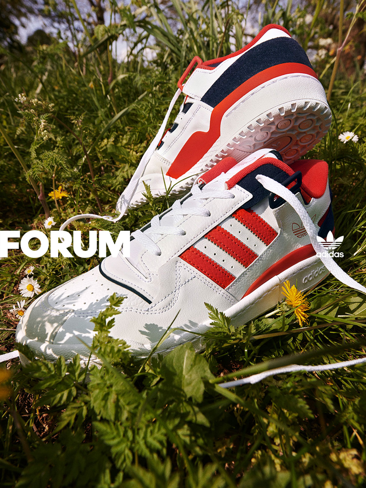 โดยรุ่นแรกคือ FORUM EXHIBIT LOW โดดเด่นด้วยองค์ประกอบแบบดั้งเดิม ที่ให้ความรู้สึกเรียบง่าย มาพร้อมกับสายรัดแบบถอดออกได้ ส่วนอัปเปอร์หนังเกรดพรีเมียมสีขาว ตัดกับเส้นสีแดงและรายละเอียดสีกรมท่า รวมถึงพื้นชั้นล่างแบบยางที่เหมาะกับสนามกีฬา