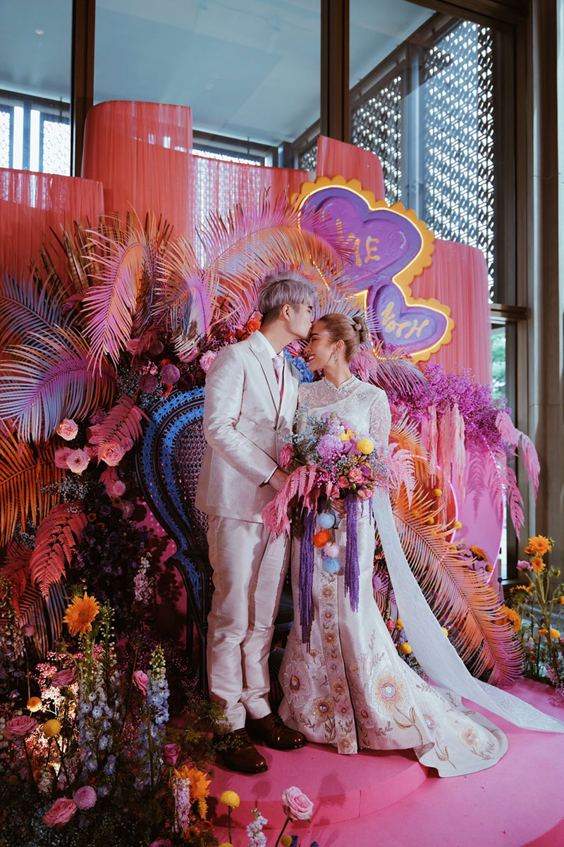 หลังจาก “เนะ-อโณทัย นิรุตติเมธี” นักกราฟฟิคดีไซน์และนักวาดภาพประกอบเจ้าของผลงานศิลปะแนวสตรีทอาร์ตที่รู้จักผลงานกันในนาม ANO (อะโนะ) ได้ประกาศข่าวดีที่โดนแฟนหนุ่ม “นต-ปณต คุณประเสริฐ” คุกเข่าขอแต่งงานเมื่อช่วงปลายปีที่ผ่านมา ที่ทำเอาหลายคนหยุดอิจฉาไม่ไหว ล่าสุดได้ถือฤกษ์งามยามดี ควงคู่เข้าสู่ประตูวิวาห์เรียบร้อยแล้ว ภายใต้บรรยากาศงานโทนสีชมพูพาสเทลสดใสน่ารัก ประดับประดาด้วยดอกไม้สุดคัลเลอร์ฟูล ที่ถ่ายทอดความเป็นศิลปินออกมาได้อย่างงดงาม และแน่นอนว่าหลายคนต่างรอคอย ที่จะได้เห็นชุดแต่งงานของคู่รักสายอาร์ตคู่นี้ว่าจะออกมาแบบไหน อะไรเป็นแรงบันดาลใจในการออกแบบชุดแต่งงาน ไปติดตามกันเลยค่า