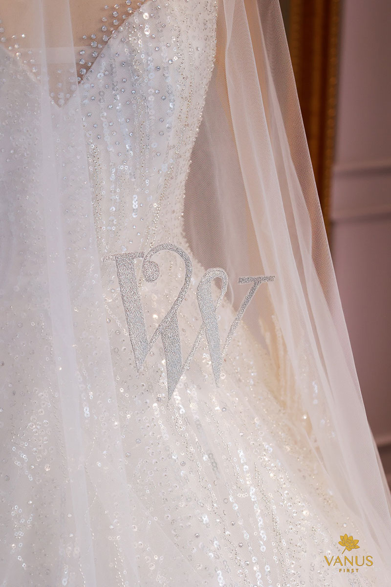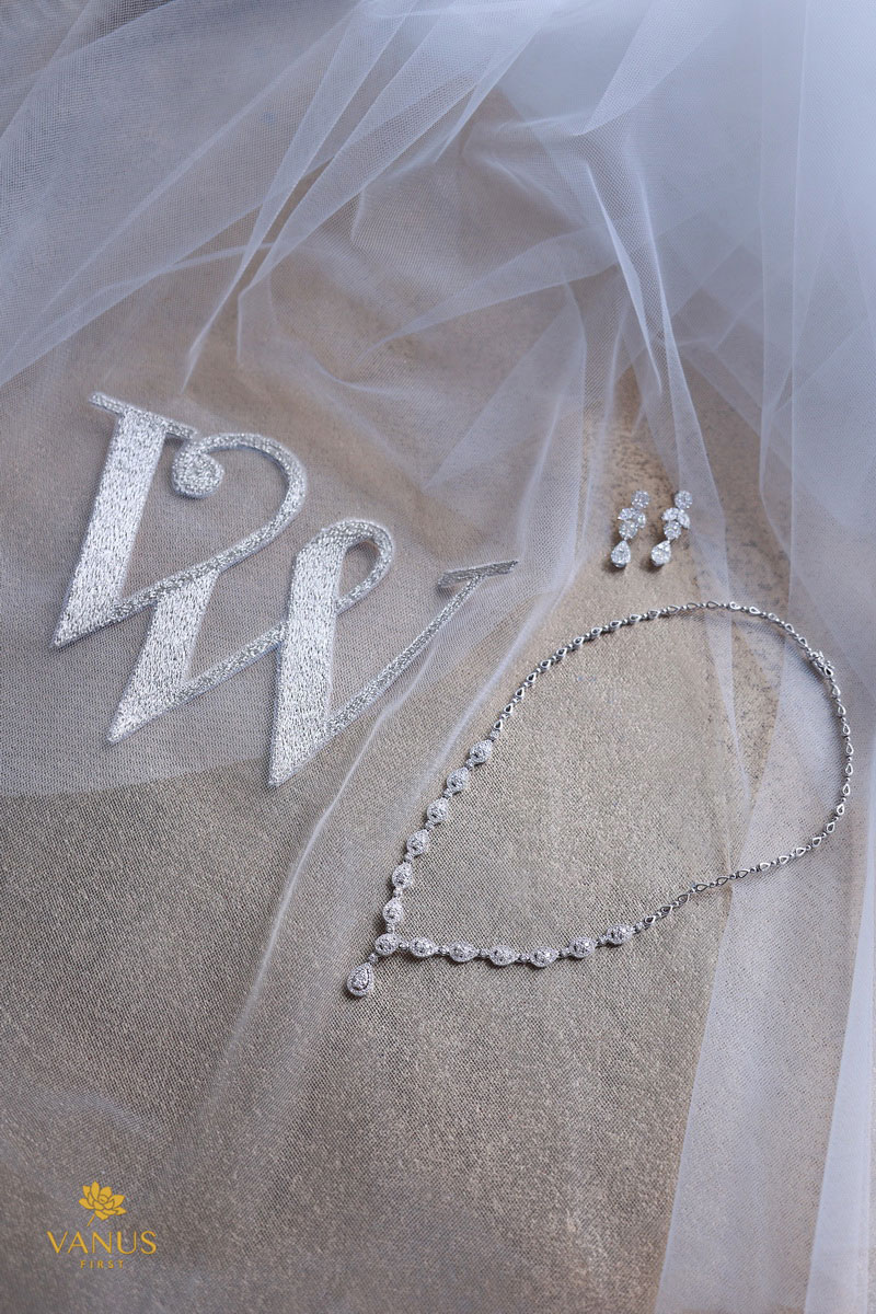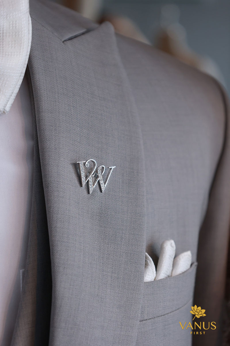 และครั้งนี้พิเศษสุดกับการเปิดตัวเข็มกลัดและพินสูทสำหรับคู่บ่าวสาว โดยการนำสัญลักษณ์โลโก้ของงานแต่ง ซึ่งเป็นอักษรย่อ VW มาจัดทำเป็นเข็มกลัดและพินสูทที่มีเพียงหนึ่งเดียว วัสดุตัวเรือนเป็นเงินแท้ชุบด้วยทองขาว18k และฝังด้วยเพทายขาว ผลิตด้วยมือเป็นหลักโดยใช้เทคนิคของช่างทองไทย ที่ต้องอาศัยประสบการณ์สืบทอดกันมารุ่นสู่รุ่น มีความใส่ใจในรายละเอียดตั้งแต่วิธีการออกแบบและขึ้นรูปตัวอักษร ขัดแต่ง และฝังอัญมณีด้วยมือทั้งหมด รวมถึงเทคนิคการลงยาสีที่สามารถเลือกเฉดสีเพื่อให้เข้ากับชุดหรือธีมสีที่ต้องการได้อย่างลงตัว ทำให้ได้ชิ้นงานที่สวยงดงามดูเลอค่ามีเอกลักษณ์ และมีเพียงหนึ่งเดียว