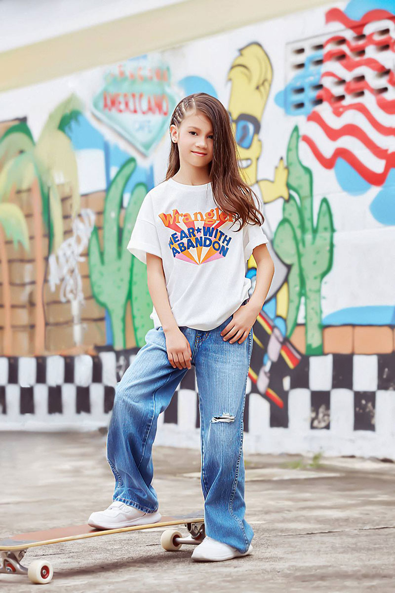 หรือแม้แต่เดนิมสำหรับคุณหนูๆ ความเท่ที่ไม่แพ้ผู้ใหญ่ ในลุคของ Wrangler Kids คอลใหม่ล่าสุด เสื้อยืดลวดลายเท่ๆ มาพร้อมกับสีสันสดใส พร้อมกับความใส่สบายเหมือนเดิม ใส่สบายตัวกับทุกกิจกรรม
