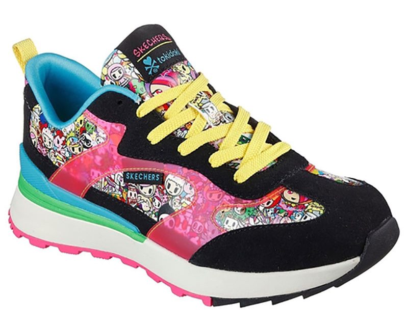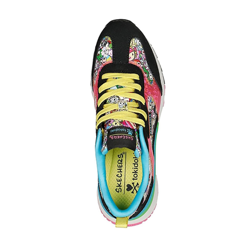 Skechers Uno รองเท้าสนีกเกอร์ที่แต่งแต้มสีสันด้วยรูปหัวใจพร้อมกระดูกไขว้อันเป็นเอกลักษณ์ของ tokidoki ในเฉดสีฟ้า สีชมพู และสีเหลืองสดใส บนตัวรองเท้าสีเรียบ , Skechers Uno2 อีกหนึ่งความน่ารักของสนีกเกอร์ในสไตล์เรโทร ที่เพิ่มความสนุกสนานด้วยลวดลายของการรวมตัวละครต่าง ๆ ของ tokidoki ที่เป็นที่ชื่นชอบเอาไว้