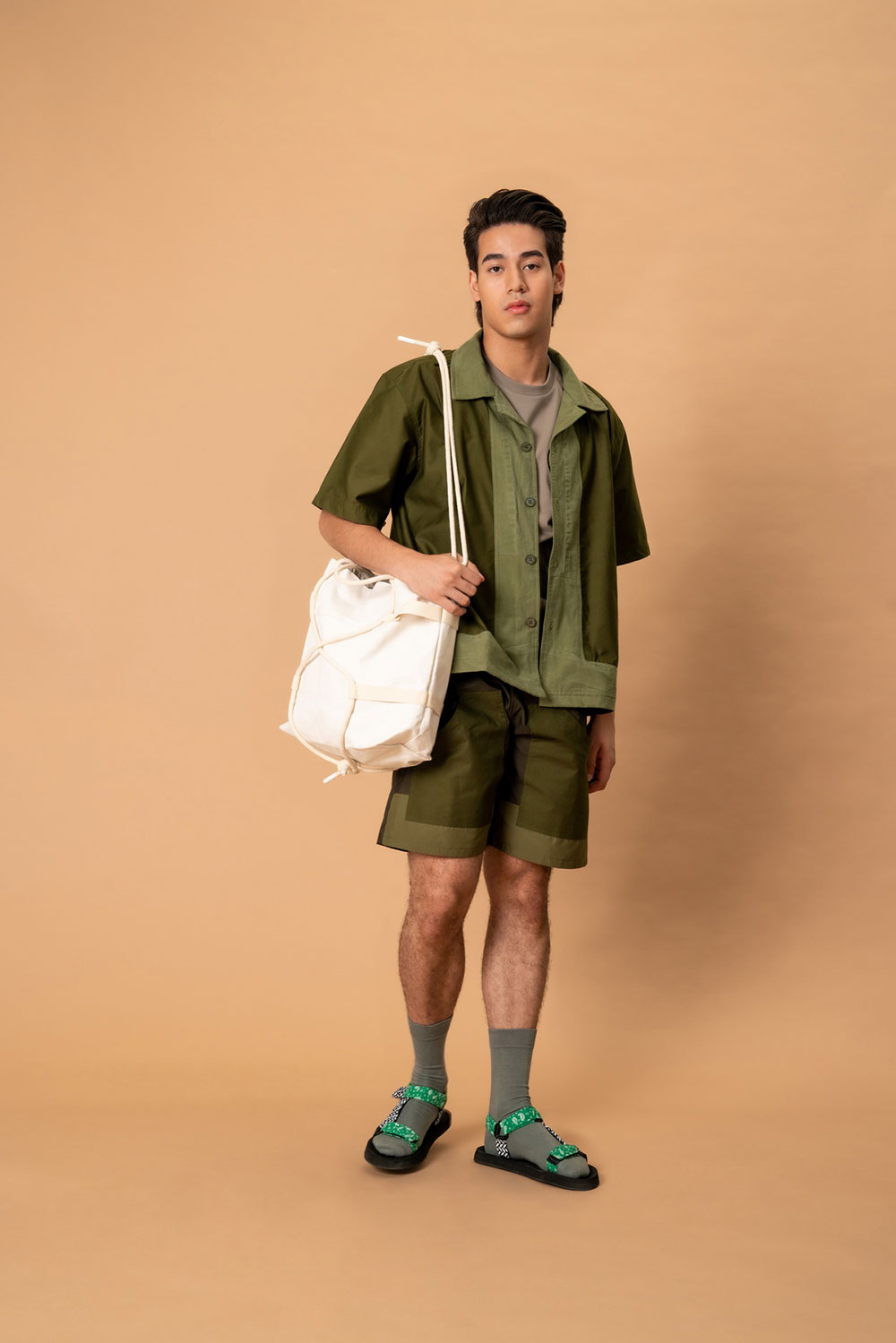 สำหรับคอลเล็กชันหน้าร้อน ใน Capsule คอลเล็กชันนี้ เน้นเสื้อ กางเกงขาสั้น เสื้อยืด กระเป๋า และผ้าพันคอ ไอเท็มง่าย ๆ สำหรับซัมเมอร์ ซึ่งในการพัฒนาอย่างยั่งยืน ในมุมของ Earthology Studio ยึดหลักการทำงานบนเสาหลัก 3s