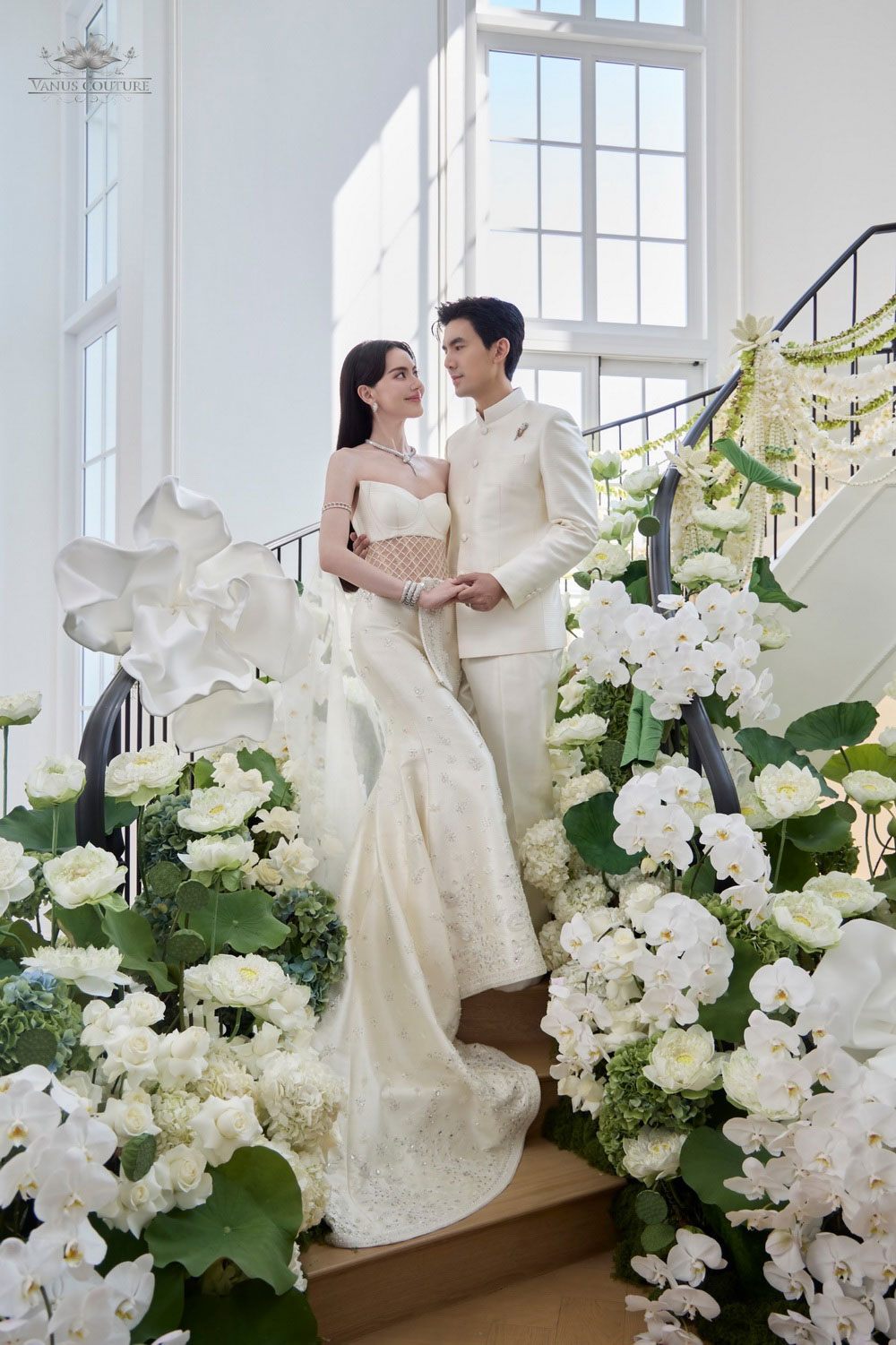 และวันนี้จะขอพาทุกคนไปชมภาพชุดแต่งงานไทยประยุกต์สุดอลังการ ของบ่าวสาวป้ายแดง ที่ออกแบบโดยห้องเสื้อชื่อดังของเมืองไทย วนัช กูตูร์ คอนเซ็ปต์ชุดแต่งงานได้มาจากแรงบันดาลใจของแนวคิด “ความรักที่บริสุทธิ์” ซึ่งสาวใหม่ได้ร่วมออกแบบกับ ดร.สรรค์ สุดเกตุ ดีไซน์เนอร์ระดับโอต์กุตูร์แห่ง Vanus Couture โดยต้องการให้ชุดสะท้อนถึงความรักที่งดงาม อ่อนโยน และบริสุทธิ์ดั่ง “ดอกบัว” ดอกไม้ไทยที่เปี่ยมด้วยความหมายแห่งความสะอาดบริสุทธิ์ การงอกงาม และความรุ่งเรือง