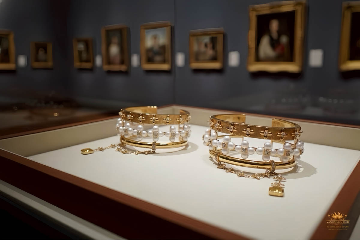 กำไลทรงกว้างที่รวมเอารูปแบบของกำไลไทยโบราณหลายชิ้นเข้าไว้ด้วยกัน อาทิ ลูกไม้ปลายมือ, ปะวะหล่ำ, กำไลพิรอด มาตีความและนำเสนอออกมาในรูปแบบใหม่ ประดับตัวห้อยระย้ารูปทรงดอกพิกุลประดับด้วยเพชร มุก และบุษราคัม ไว้บริเวณปลายมือ สื่อถึงความ มั่งคั่ง และความอุดมสมบูรณ์ของสยามประเทศ