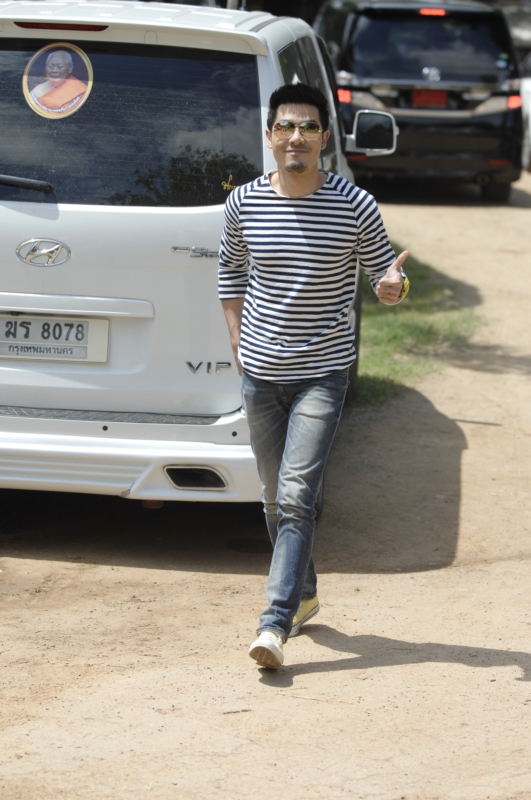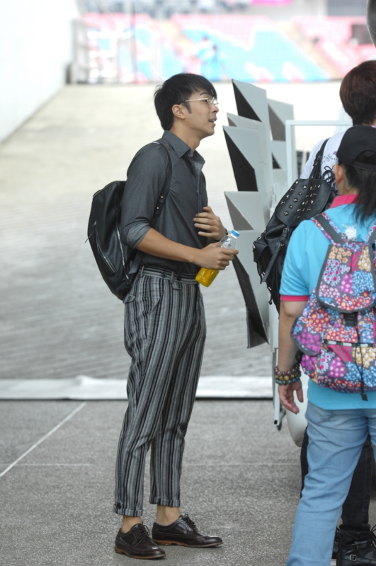 ไต้ฝุ่น KPN ใส่กางเกงลายทาง และเลือกจับคู่กับเสื้อเชิ้ตสีพื้นๆ ไม่มีลวดลาย