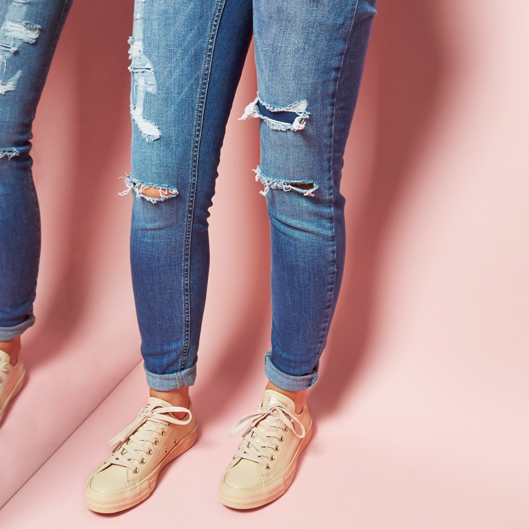 คอนเวิร์ส Holiday Nude Collection ที่ออกมาล่าสุดนี้เป็นโปรเจคก์ร่วมกันของ มัลติแบรนด์แฟชั่นแห่งอังกฤษ และรองเท้าคอนเวิร์ส (Converse) เลือกดีไซน์ทรงรองเท้า สนีคเกอร์รุ่นฮิตอย่าง Chuck Taylor All Stars มาจับคู่กับโทนสีสุดฮิตแห่งปี สีพาสเทลนู้ดๆ เข้าด้วยกัน โทนสีดูละมุนหวานๆ สดใส รูปทรงรองเท้าเม็ดอัลมอนต์ น้ำหนักเบาสวมใส่สบาย เหมาะกับสาวๆ เป็นที่สุดเลยล่ะ!!