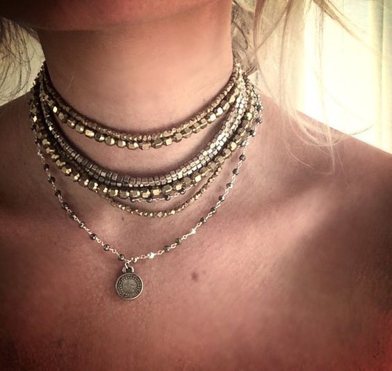 จากโชคเกอร์เส้นเดียว เส้นดำ กลายเป็นสร้อยหลายเส้นแบบนี้ แบบโลหะ เพิ่มจิวเวอรี่สวยๆ