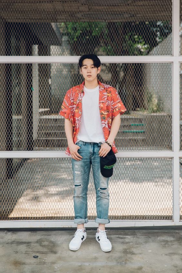 นท เดอะสตาร์ เสื้อเชิ้ตฮาวายสีแดง กับยีนส์ขาดๆ สีขาว